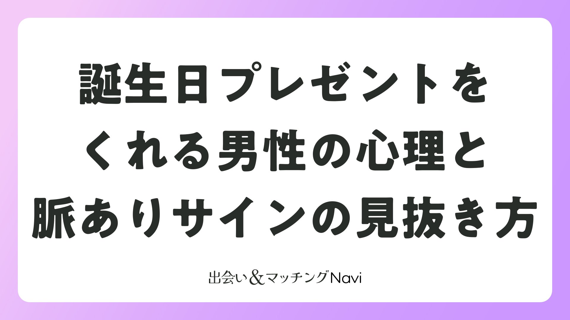 マッチングアプリや婚活で出会った男性から誕生日プレゼントをもらうと、「これって脈ありなのかな?」と期待と不安が入り混じりますよね。実は、誕生日プレゼントをくれる男性の心理には、いくつかのパターンがあります。この記事では、マッチングアプリ・婚活シーンにおける男性の本音を詳しく解説します。