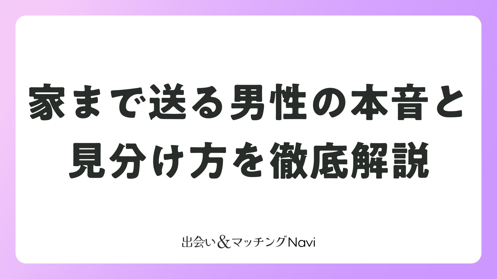 マッチングアプリや婚活で出会った男性から「家まで送るよ」と言われたとき、多くの女性は戸惑うのではないでしょうか。それは脈ありのサインなのか、それとも別の意図があるのか。男性の本当の気持ちを理解することで、より良い恋愛判断ができるようになります。本記事では、家まで送る男性の心理を詳しく解説し、状況別の見分け方をご紹介します。