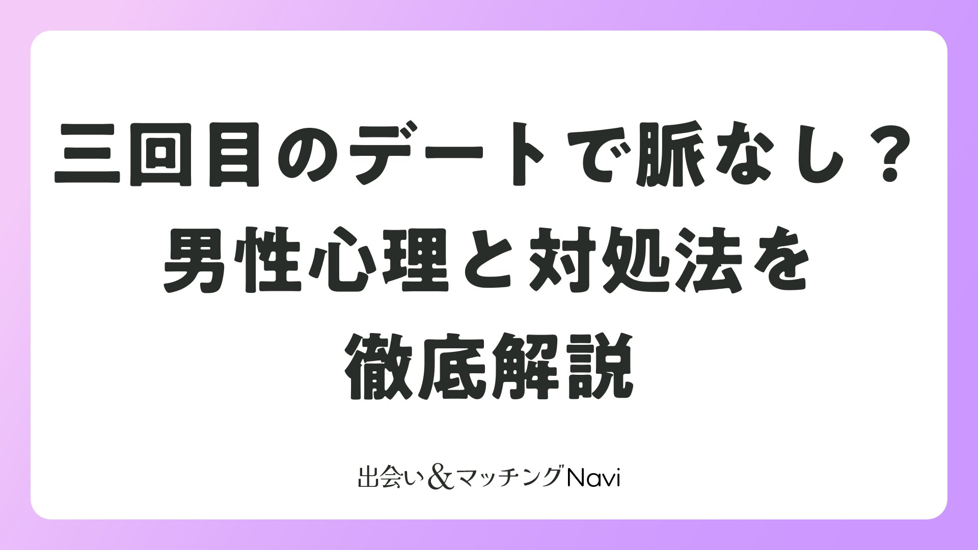 マッチングアプリで出会った相手と三回目のデートを迎えても進展がないと、「脈なし?」と不安になる女性は多いです。でも、それは必ずしも脈なしを意味しません。この記事では、男性心理を深掘りし、脈あり・脈なしの判断基準や、婚活・恋愛を成功させるためのポジティブな対処法を紹介します。焦らず、自分の魅力を活かして次のステップへ進みましょう。