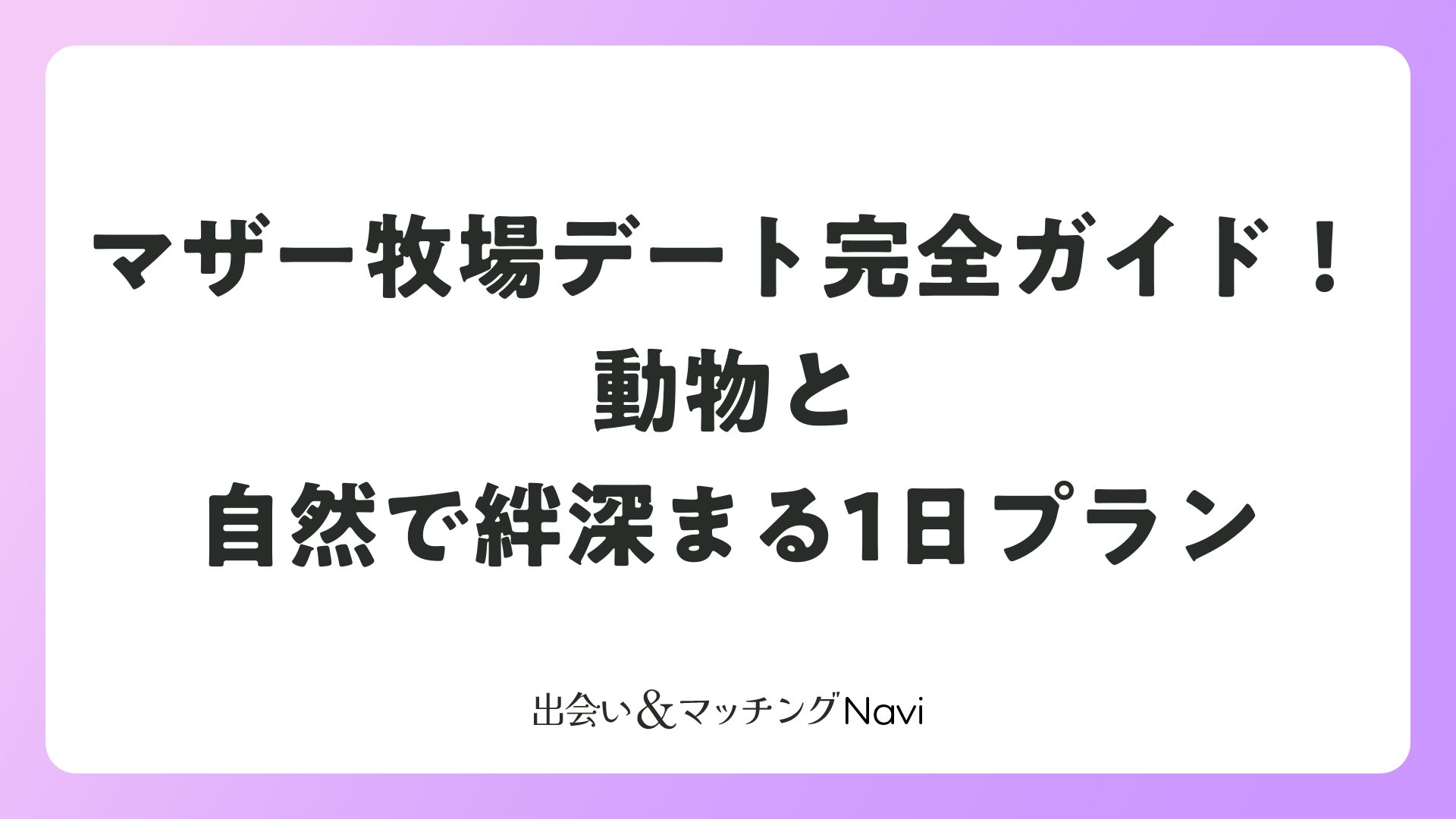 マザー牧場は、千葉県富津市に位置する自然豊かな牧場で、カップルデートにぴったりのロマンチックなスポットです。動物たちとの触れ合いや絶景を眺めながらのんびり過ごせば、二人の絆が自然と深まります。この記事では、マッチングアプリで出会ったばかりのカップルや、婚活中の皆さんが安心して楽しめるマザー牧場デートプランを、アクセスからおすすめアクティビティ、予算まで詳しくご紹介します。