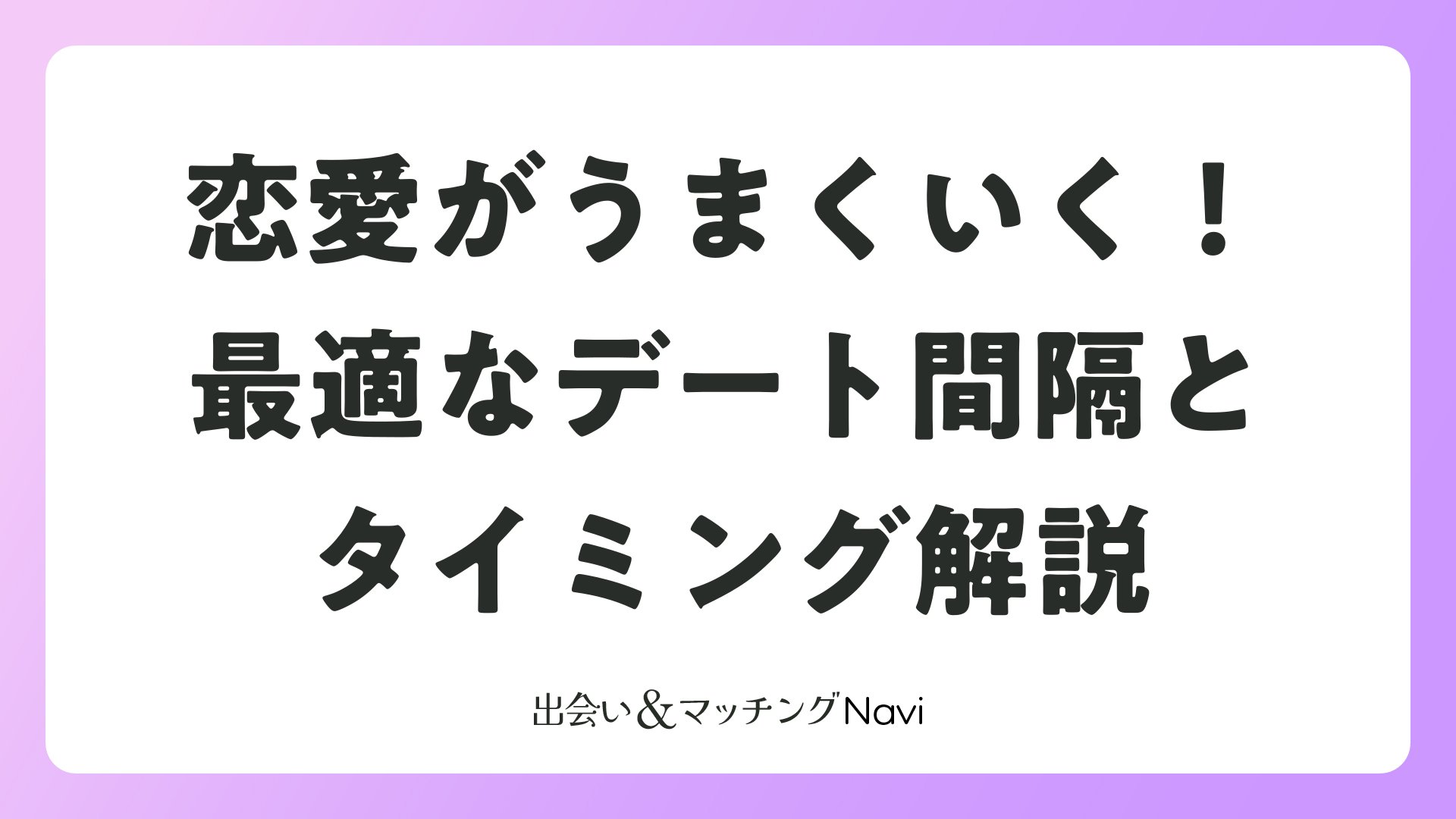 マッチングアプリや婚活で大切なのは、デート間隔を適切にコントロールすることです。間隔が短すぎても長すぎても、せっかくの出会いが実を結ばない可能性が高まります。この記事では、読者の皆さんが恋愛をスムーズに進めるための最適なデート間隔を、初デートから複数回目、付き合うまでの流れに沿って詳しく解説します。複数のデータや体験談を基に、ポジティブなアドバイスをお届けします。
