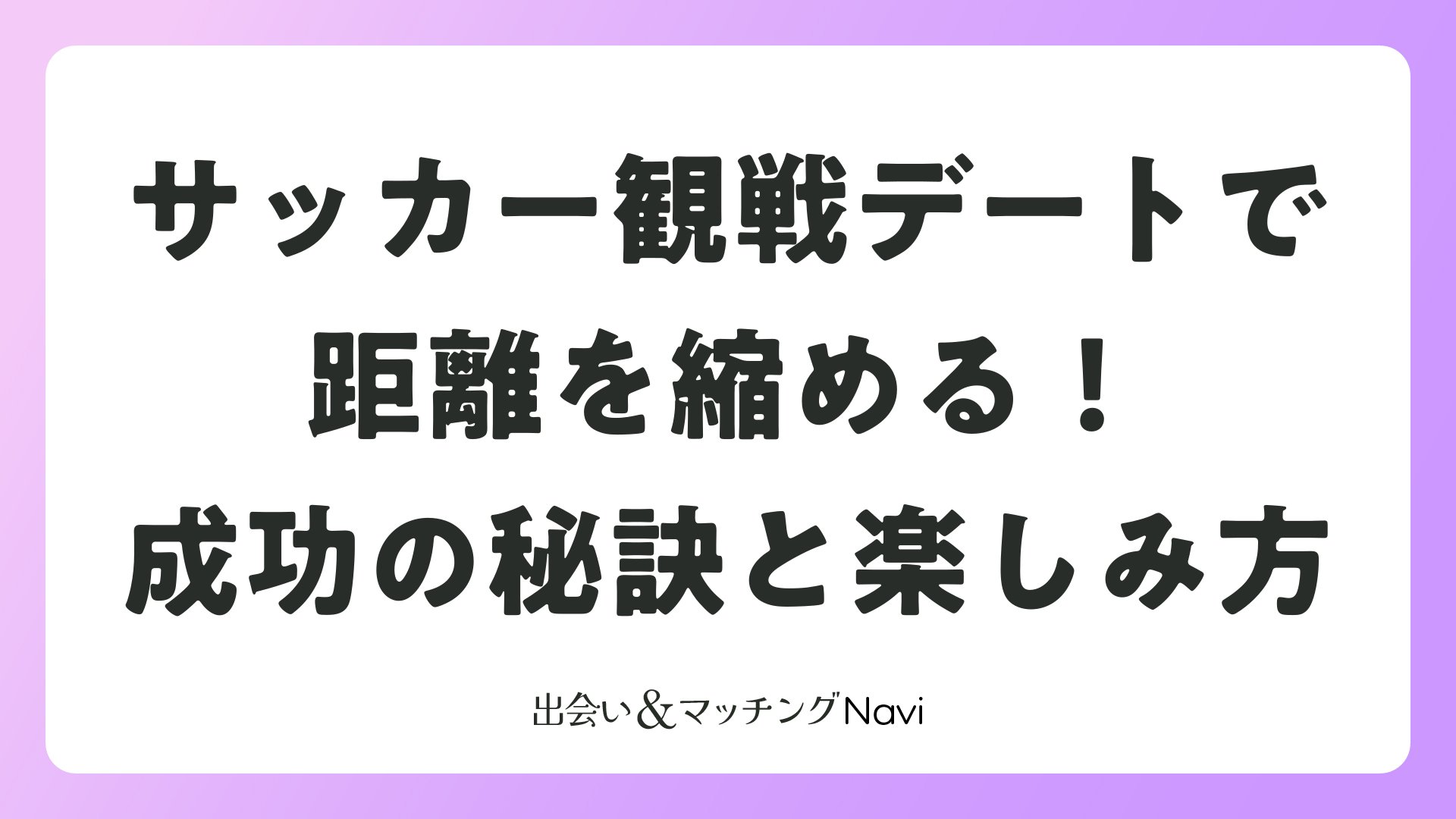 サッカー観戦デートは、マッチングアプリで出会ったカップルに最適なプランです。共通の興奮を共有し、自然に絆を深め、次のステップへつなげましょう。無理のないスケジュールと気遣いを忘れずに、素敵な時間を。
