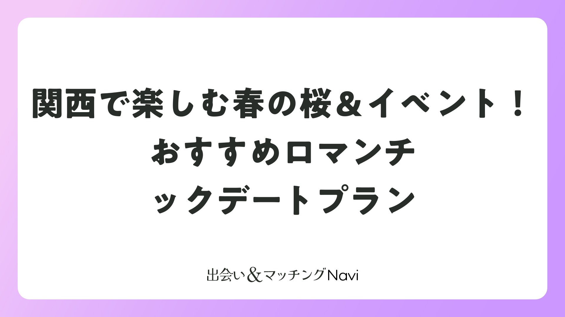 春の関西は、桜の満開の景色や多彩なイベントが恋人たちの心を掴む絶好のデートシーズンです。マッチングアプリで出会ったばかりのカップルから、婚活中の方まで、ロマンチックな春デートを楽しむためのプランを厳選してご紹介します。穏やかな気候の中で、手を繋いで散策したり、特別なイベントで思い出を作ったりと、二人の絆を深めるチャンスが満載です。