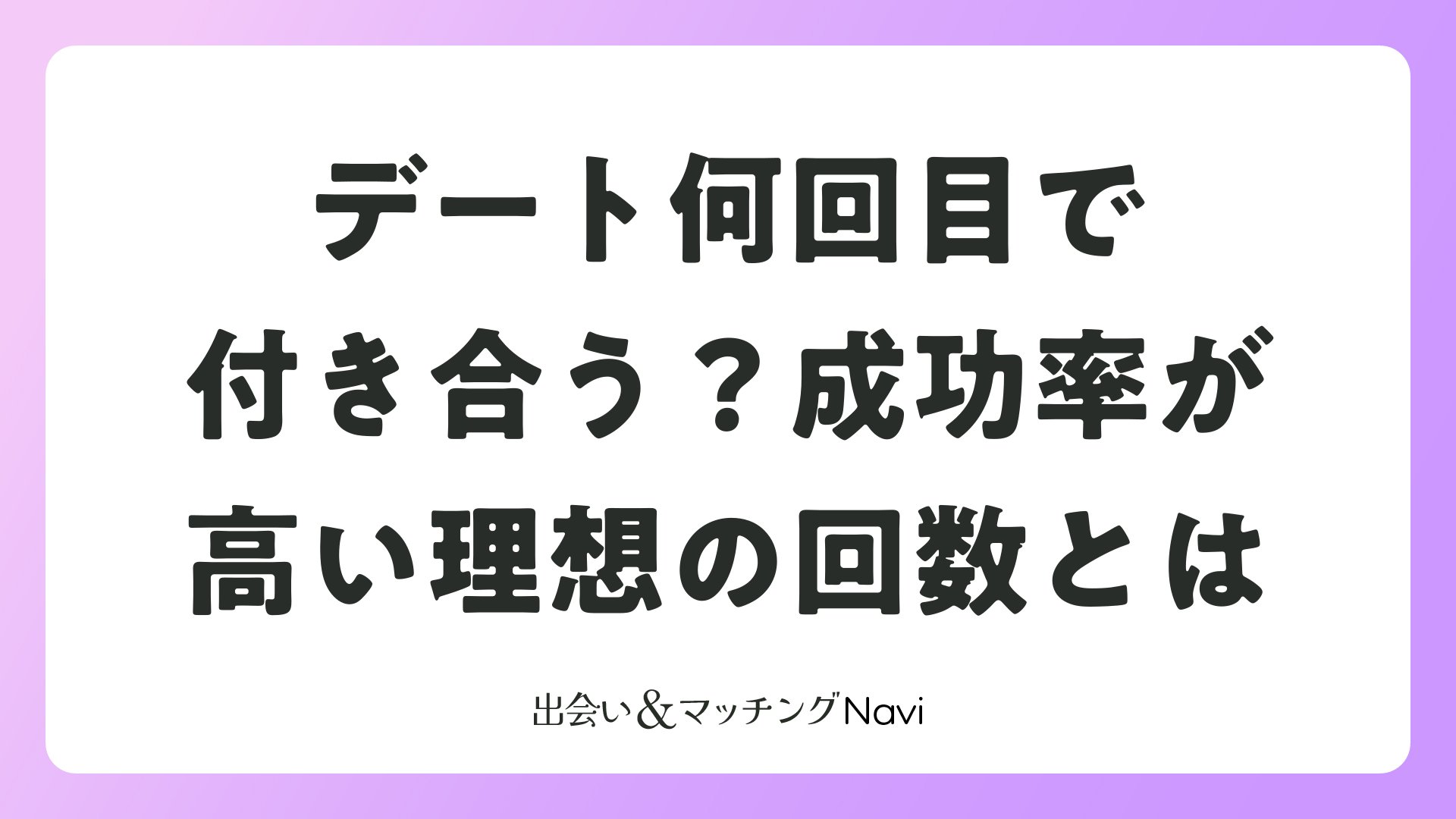 マッチングアプリや婚活で出会った相手と付き合うまでのデート回数は、平均で3回が目安です。このタイミングで告白すると成功率が高く、相手の気持ちも自然に高まっています。読者の皆さんがスムーズに恋人関係へ進めるよう、各回のデート内容や脈ありサイン、具体的な流れを詳しくお伝えします。