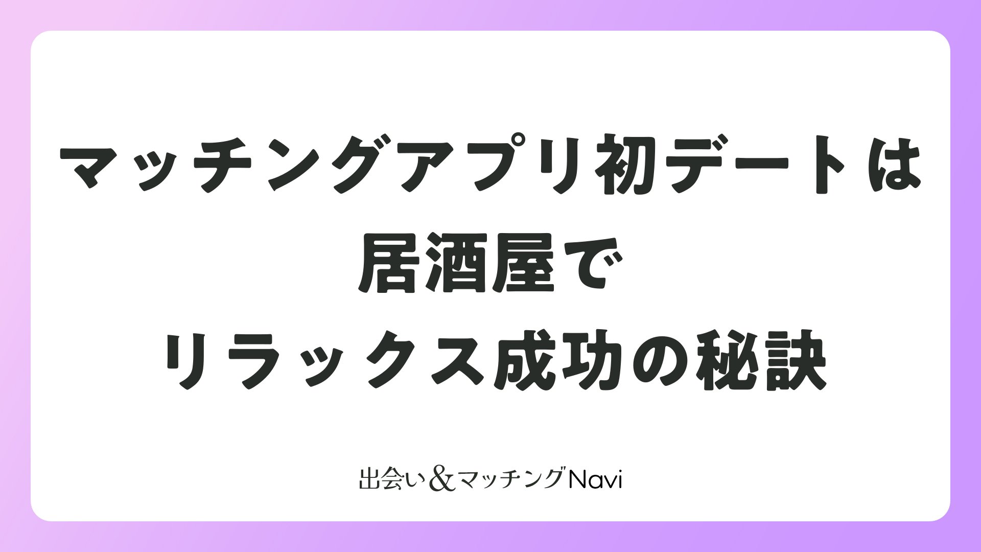 マッチングアプリ初デートは居酒屋でリラックス成功の秘訣をまとめました