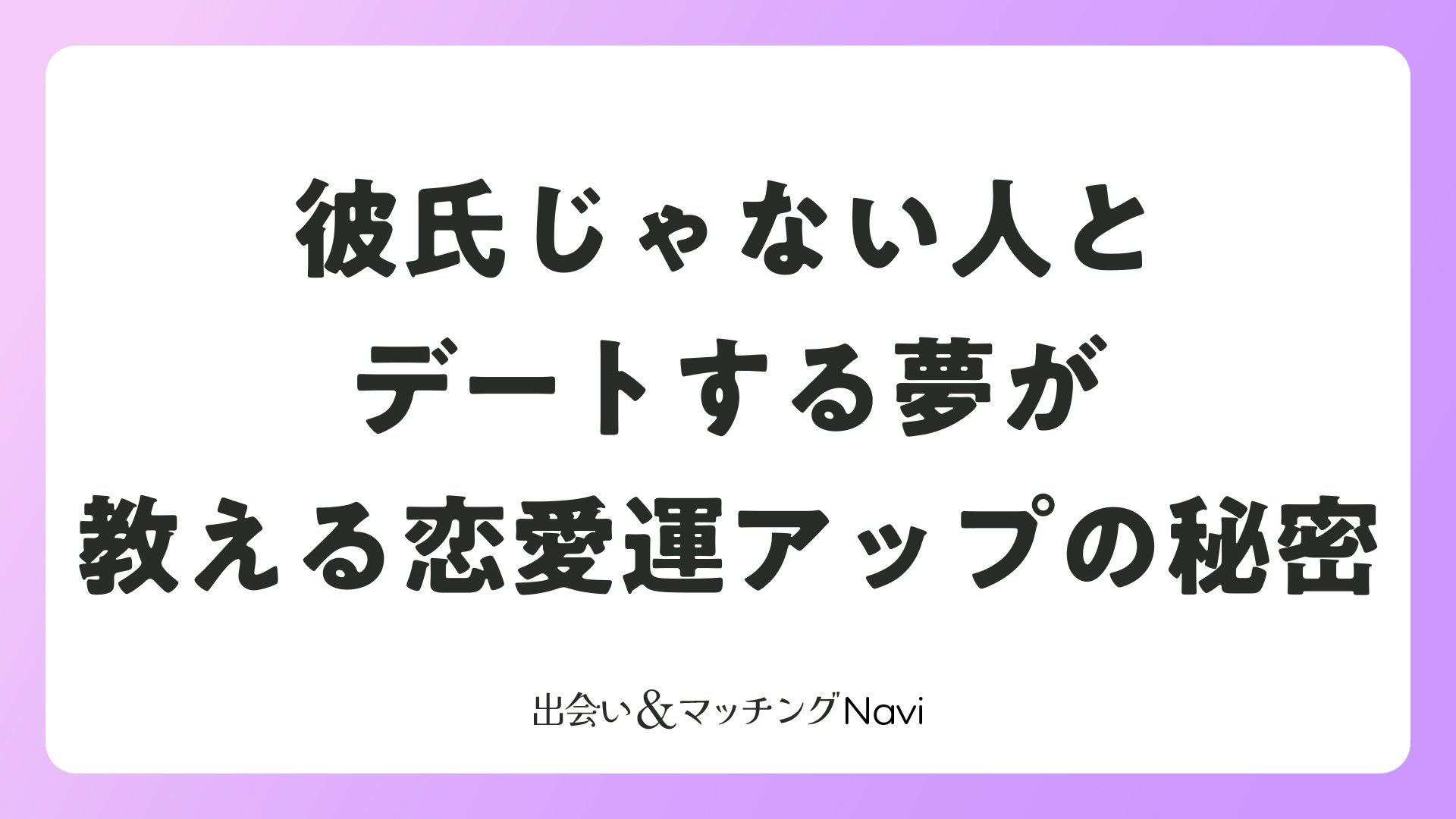 彼氏がいるのに彼氏じゃない人とデートする夢を見たことはありませんか?この夢は、潜在意識があなたに大切なメッセージを送っている可能性があります。マッチングアプリや婚活、恋愛をテーマにした私たちのメディアでは、そんな夢をポジティブに捉え、恋愛運向上新しい出会いのチャンスとして活用する方法をお伝えします。この記事では、夢占いの観点から夢の意味を詳しく解説し、現実の恋愛や婚活に活かすヒントを満載でお届けします。