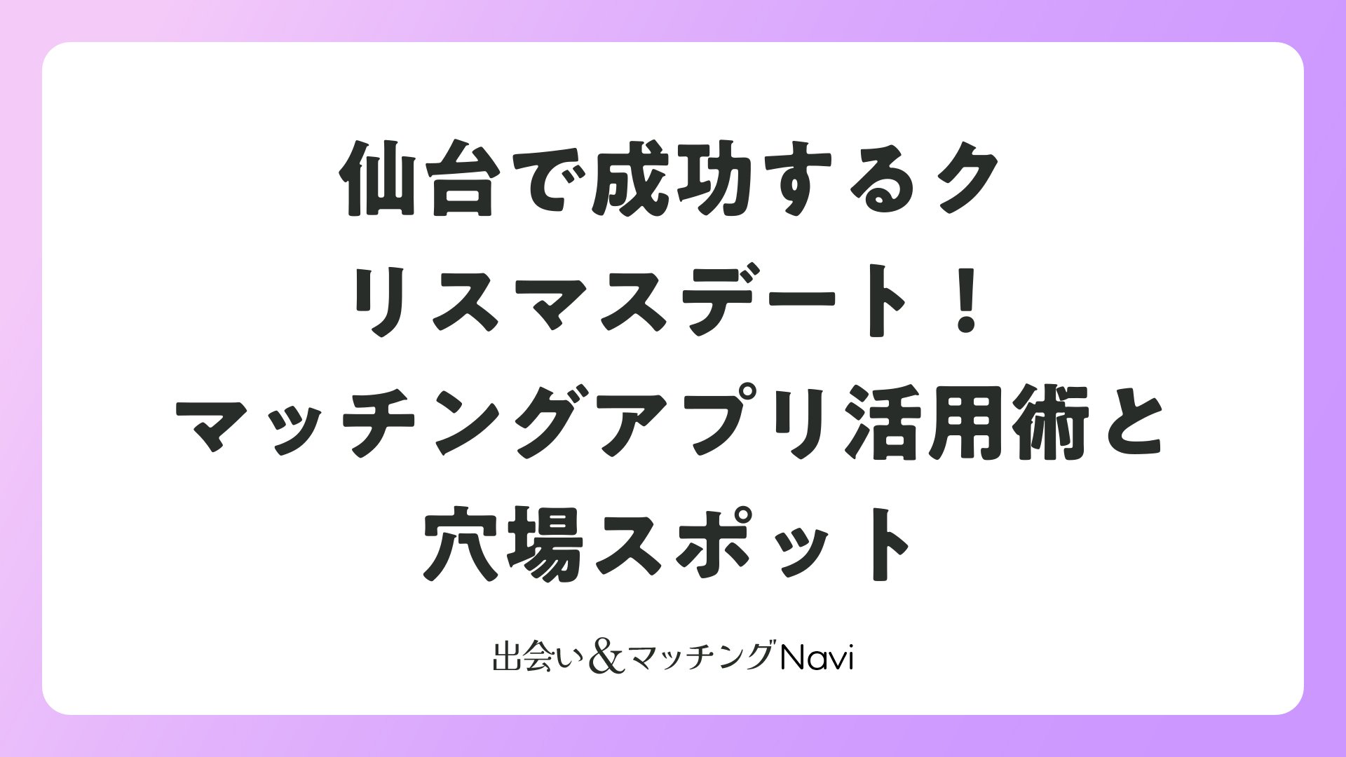 この冬、仙台で最高のクリスマスを。アプリマッチングからデート成功まで、すべてが揃いました。あなたも今すぐ行動を!