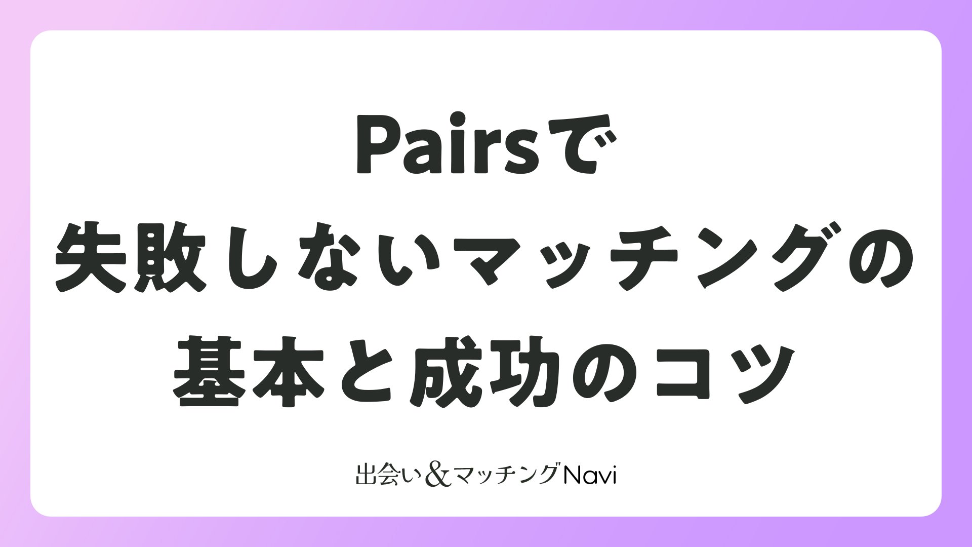 Pairsで失敗しないマッチングの基本と成功のコツをまとめました