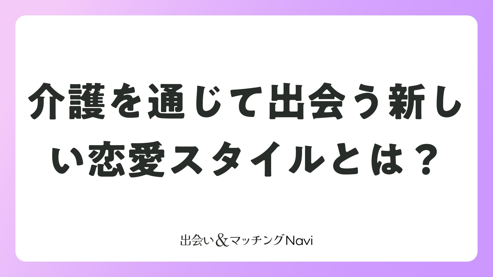 介護マッチングは、婚活・恋愛メディアの読者にとって、介護を軸にした新しい出会いの場です。おすすめサービスを活用し、柔軟なマッチングで運命のパートナーを見つけましょう。あなたの高品質な恋愛生活が、ここから始まります。