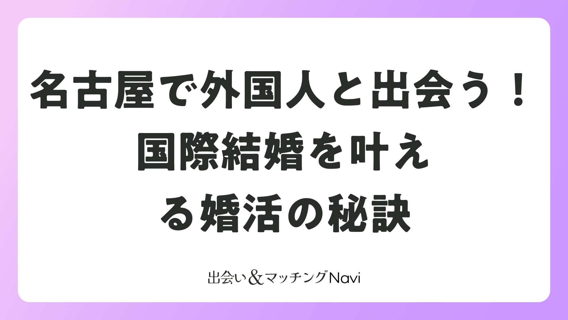 名古屋で外国人出会いを実現するには、結婚相談所、婚活パーティー、マッチングアプリの組み合わせが効果的です。成功事例のように短期間で国際結婚が可能で、異文化の魅力あふれる幸せな未来が待っています。