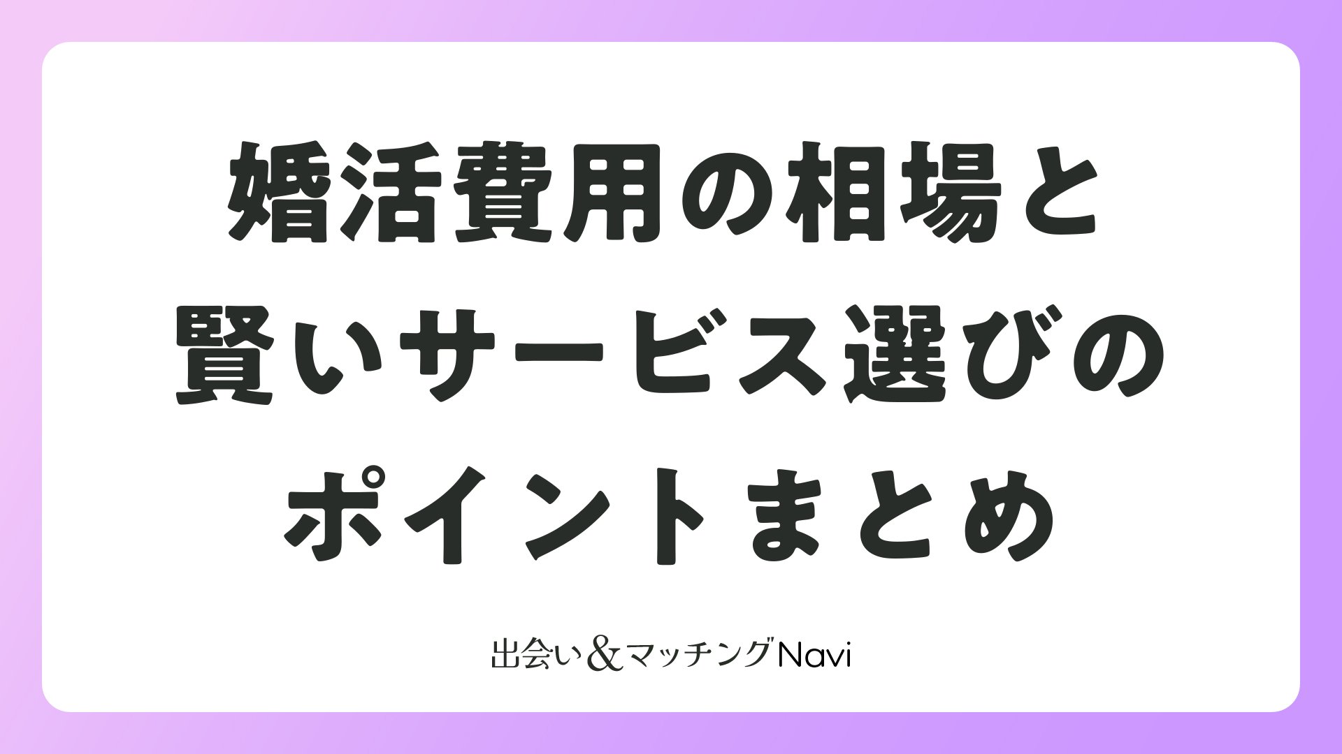 婚活費用の相場と賢いサービス選びのポイントまとめをまとめました