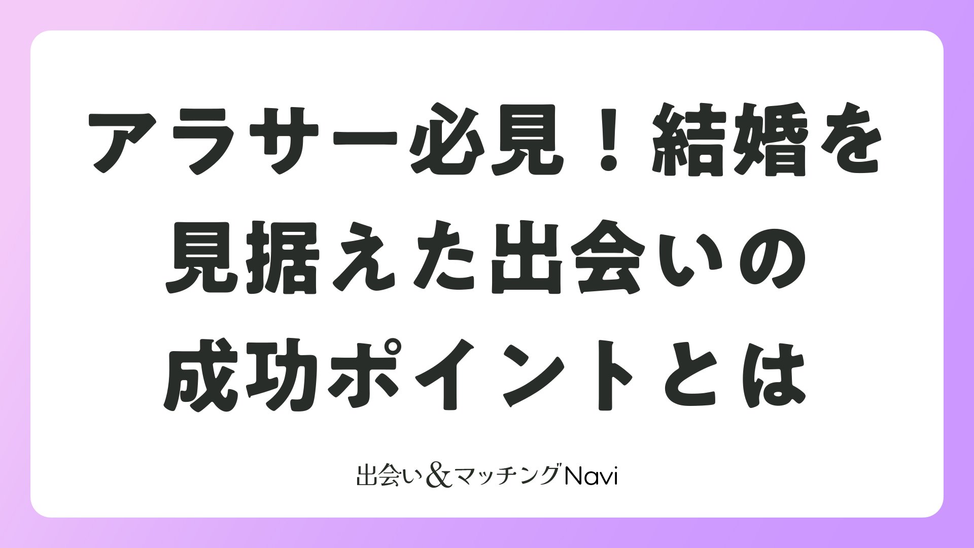 アラサー必見!結婚を見据えた出会いの成功ポイントとはをまとめました