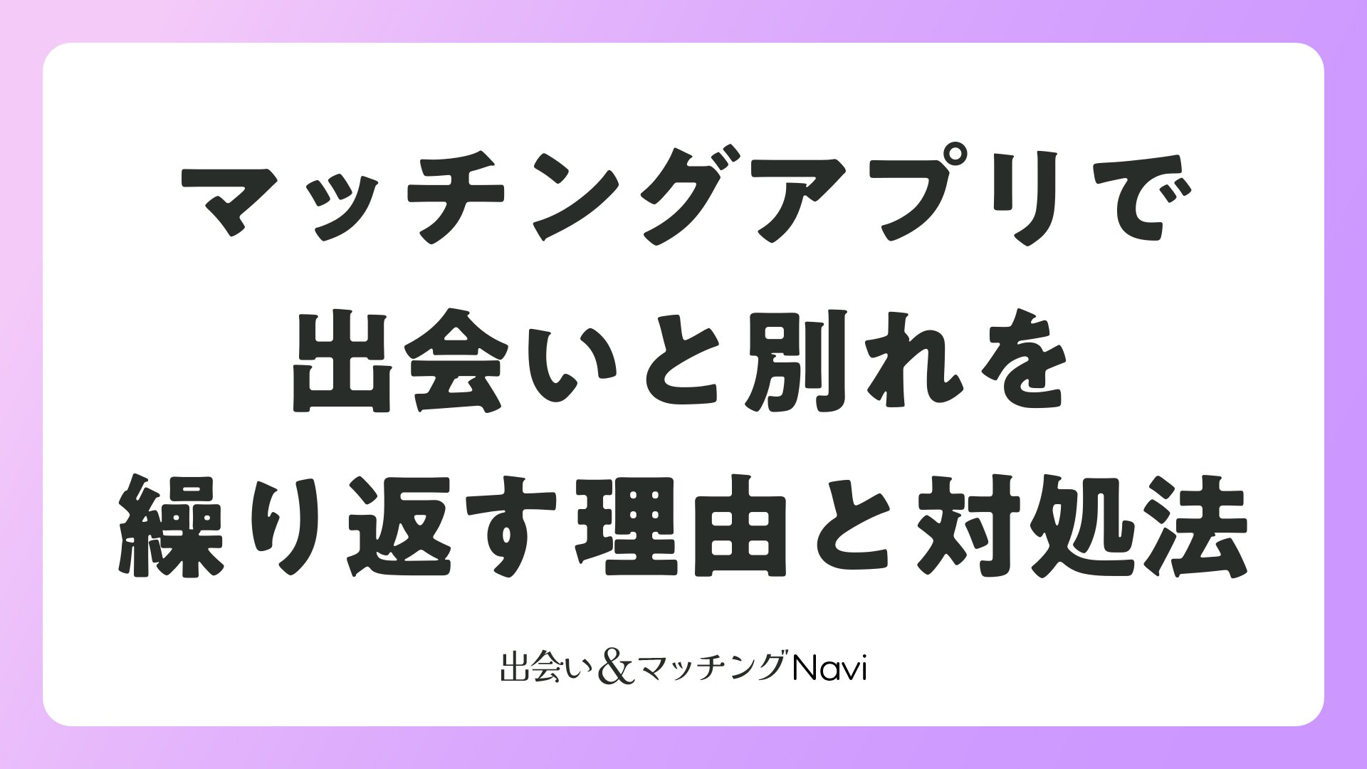 マッチングアプリで出会いと別れを繰り返す理由と対処法をまとめました