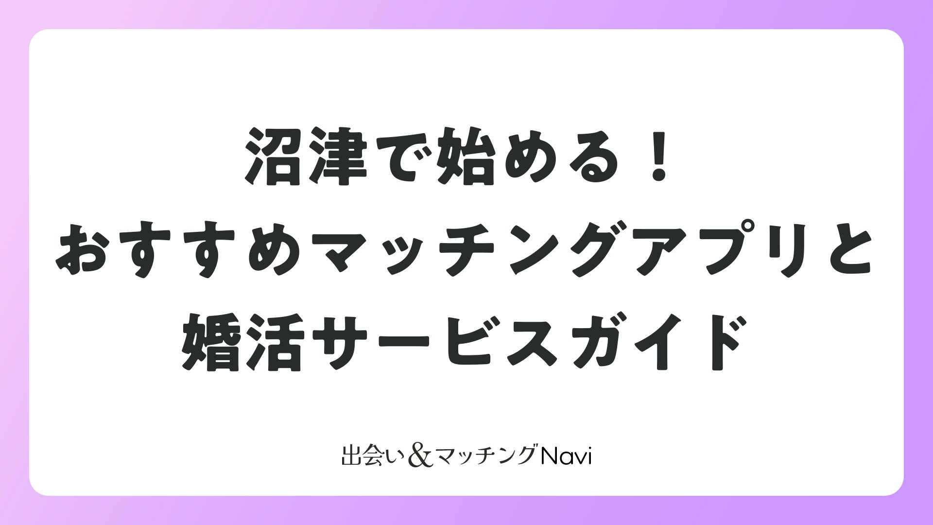 沼津市で出会いを求めている皆さん、こんにちは!美しい海と山に囲まれたこの街で、マッチングアプリや婚活サービスを活用すれば、理想のパートナーとの出会いがすぐそこにあります。恋活から本気の結婚相手探しまで、沼津に特化したおすすめ方法を詳しくご紹介します。この記事では、地元沼津で実際に活躍するアプリやサービスを中心に、読者の皆さんがすぐに始められるポジティブな情報をまとめました。