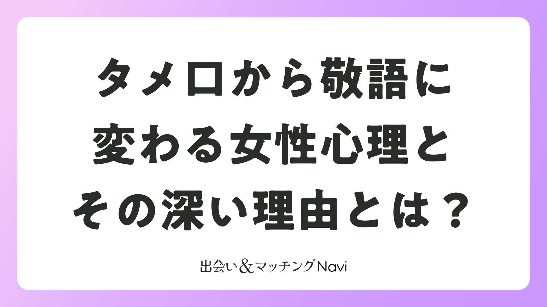 マッチングアプリや婚活で出会った相手とのメッセージのやり取りで、最初はタメ口だったのに急に敬語に切り替わった経験はありませんか?一見すると距離が遠くなったように感じるこの変化には、実は女性の複雑な心理が隠れています。本記事では、タメ口から敬語に切り替える女性の心理について、マッチングアプリ・婚活での実例を交えながら詳しく解説します。