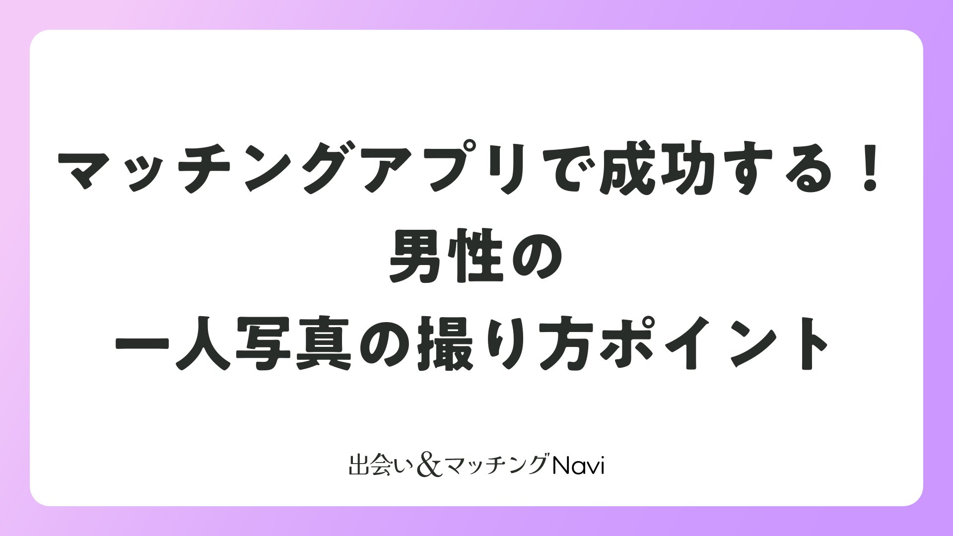 マッチングアプリで出会いを増やしたい男性にとって、プロフィール写真は最初の印象を決める最重要要素です。特に一人で写った写真は、相手に自分をクリアに印象づけ、マッチング率を大幅に向上させる鍵となります。この記事では、男性が一人で魅力的な写真を撮影するコツを徹底解説。実践すれば、いいねがぐんと増え、素敵な出会いに繋がります。