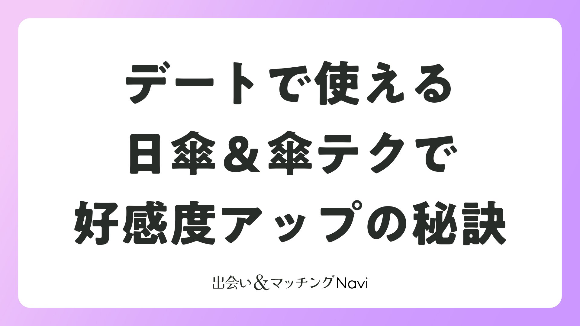 これらを意識すれば、どんな関係性でもスムーズに進められます。婚活アプリのユーザーなら、プロフィールで「雨の日デート好き」と書くのもアリ。共通の話題として相合傘を振り返れます。