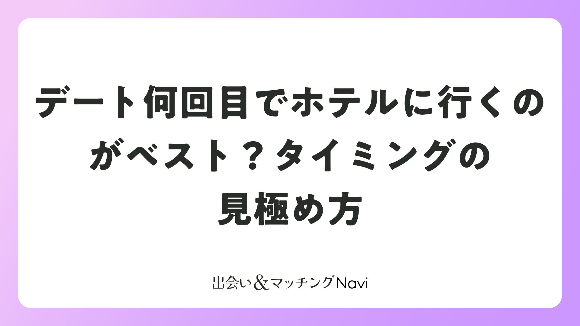 マッチングアプリで出会った相手とのデートで、ホテルに行くタイミングを悩む人は多いです。明確な回数はありませんが、平均的には3回目が目安とされ、お互いの気持ちや関係性の進展を重視するのがおすすめです。この記事では、婚活や恋愛を真剣に考える読者の皆さんに向け、信頼を築きながら自然に進展させる方法を詳しく解説します。