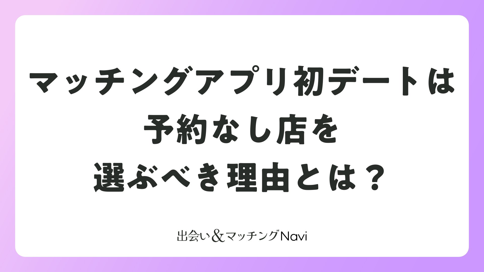マッチングアプリ初デートは予約なし店を選ぶべき理由とは?をまとめました