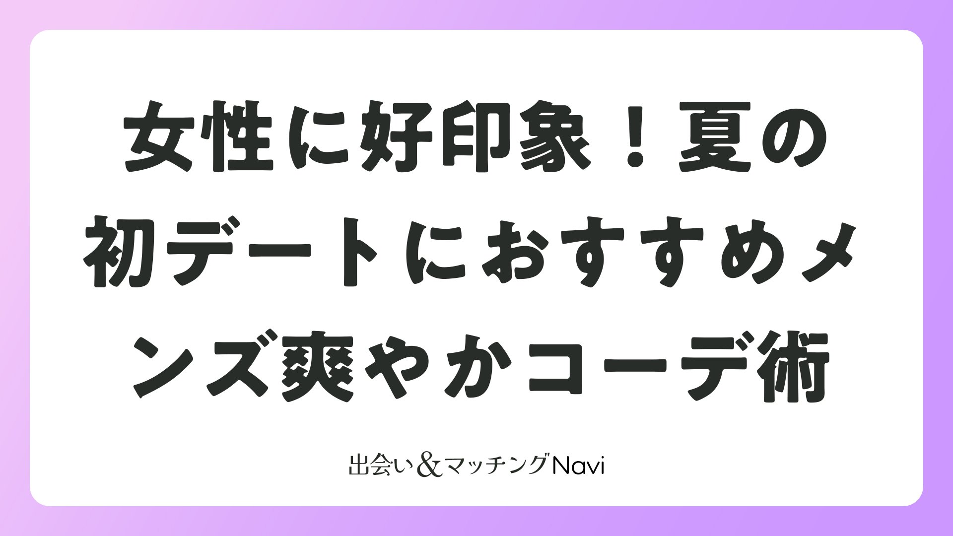 夏のデートコーデは、清潔感と爽やかさを武器に、キレイめカジュアルを基本に据えましょう。マッチングアプリや婚活の場で出会った女性に好印象を与え、素敵な関係を築く第一歩となります。