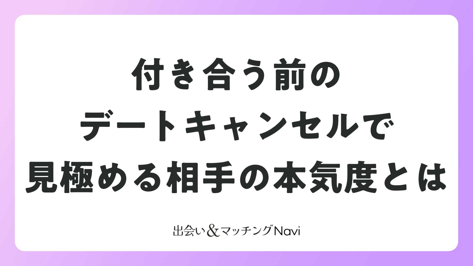 マッチングアプリで出会った相手との付き合う前のデートがキャンセルになったら、誰しもが一瞬ガッカリします。でも、そんな時こそ冷静な対応で関係を前向きに進められるチャンスです。この記事では、キャンセルの理由や心構え、効果的な対処法を詳しく解説。読者の皆さんがよりスムーズな恋活・婚活を続けられるよう、役立つ情報をまとめました。