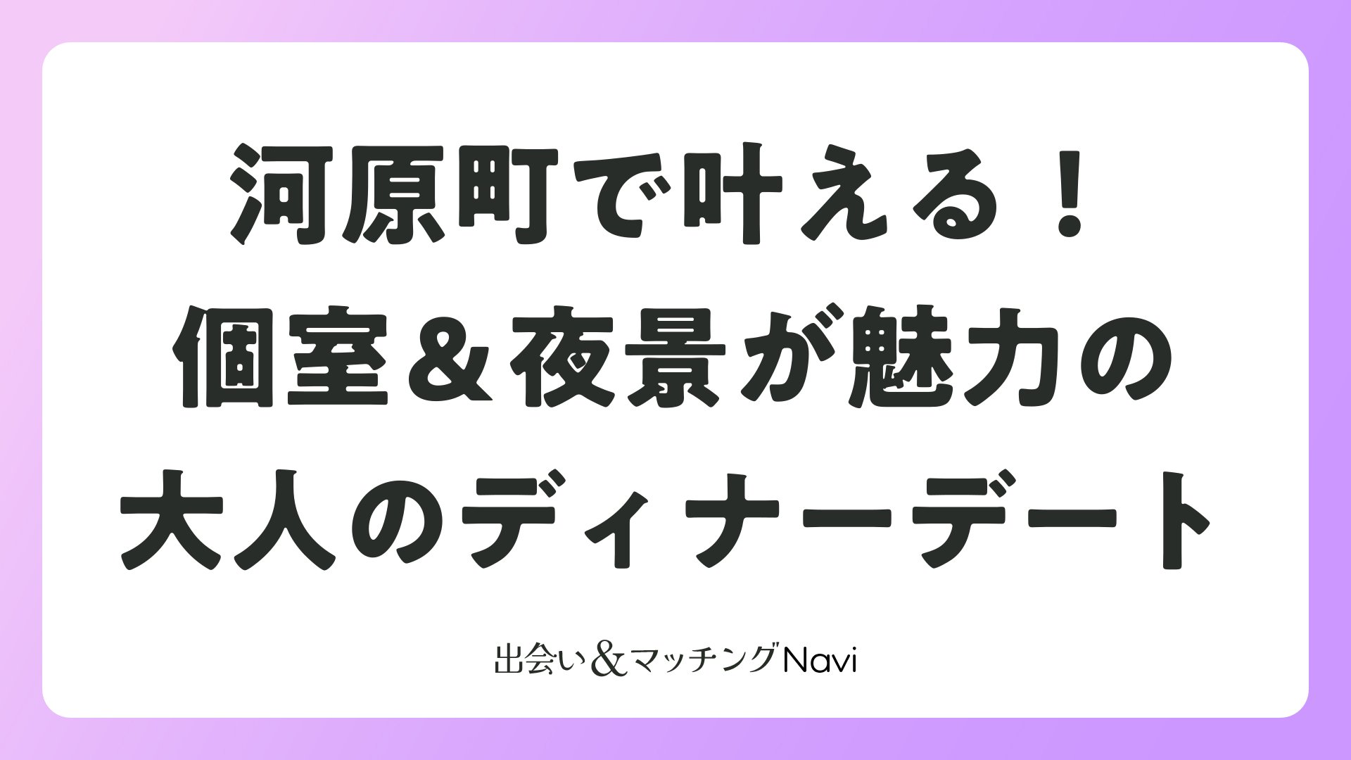 アクセス良し、予算柔軟、ムード満点の河原町で、特別なディナーを。恋愛メディア推奨のプランで、次デート確定です。