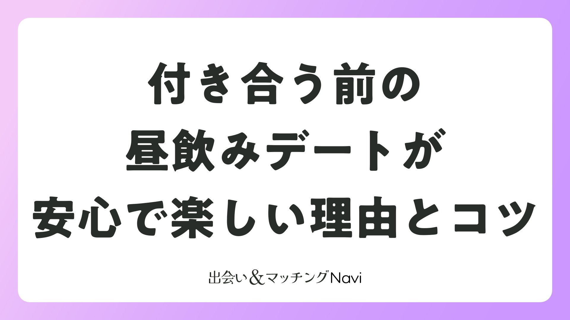 マッチングアプリで出会った相手と付き合う前のデートとして、昼飲みデートは安全で気軽に楽しめる最適な選択肢です。明るい時間帯のお酒を交えたデートは、相手の本質を見極めやすく、婚活や恋愛を真剣に考える方にぴったりです。この記事では、昼飲みデートのメリット、場所選び、会話術、安全対策、成功事例まで詳しく解説します。