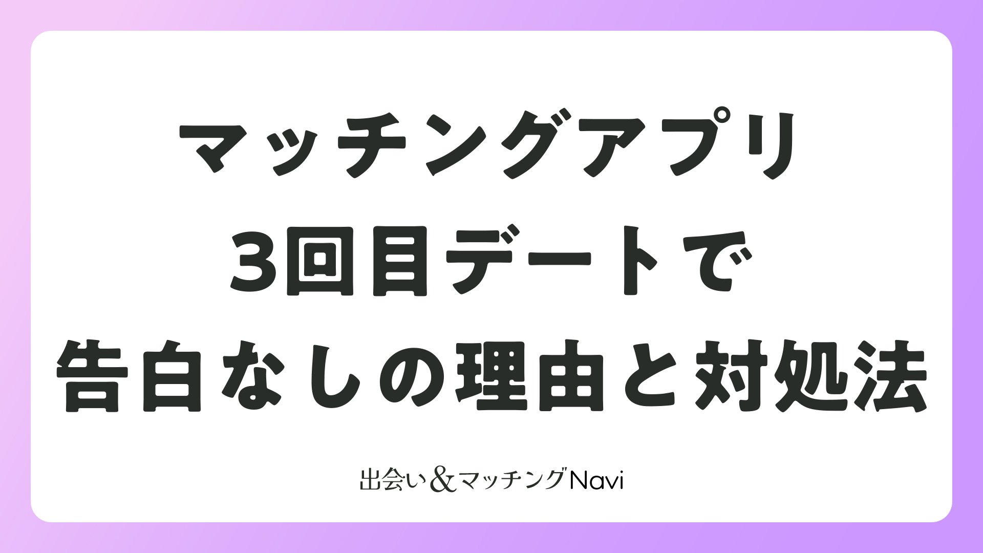 マッチングアプリで出会った相手と3回目のデートを迎えても告白がないと、不安を感じる人は少なくありません。でも、これは必ずしも脈なしのサインではなく、相手のペースや関係性の築き方によるものが大きいんです。この記事では、そんな状況をポジティブに乗り越えるための理由と具体的な対処法を、読者の皆さんが実践しやすい形でまとめました。焦らずに次のステップへ進むためのヒントをたくさんお届けします。