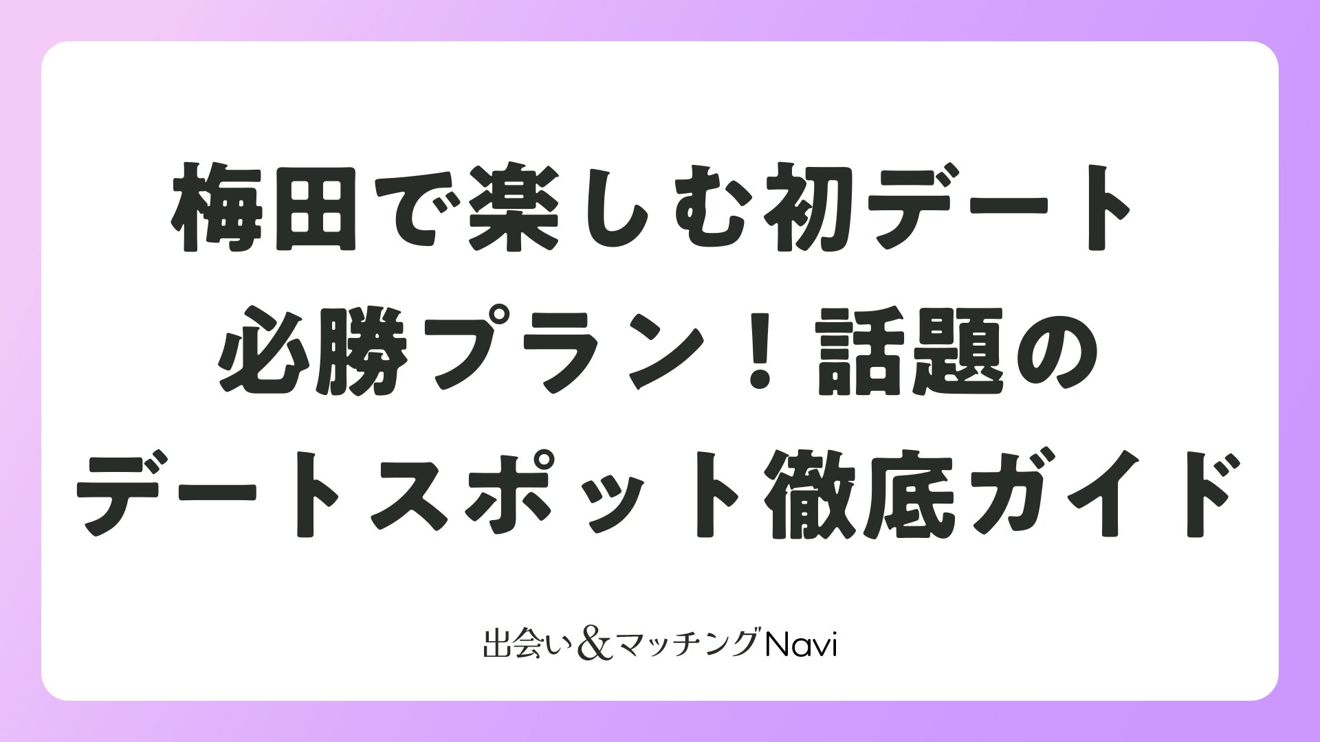 梅田は大阪の中心地として、マッチングアプリで出会ったばかりの相手とのデートにぴったりのアクティビティが豊富に揃っています。アクセス抜群の駅周辺で、初デートから仮交際中のカップルまで、恋活・婚活を意識したロマンチックで話しやすいスポットを厳選して紹介します。気軽に楽しめてお互いの相性を確かめられるプランを中心に、ポジティブなデート体験をサポートします。