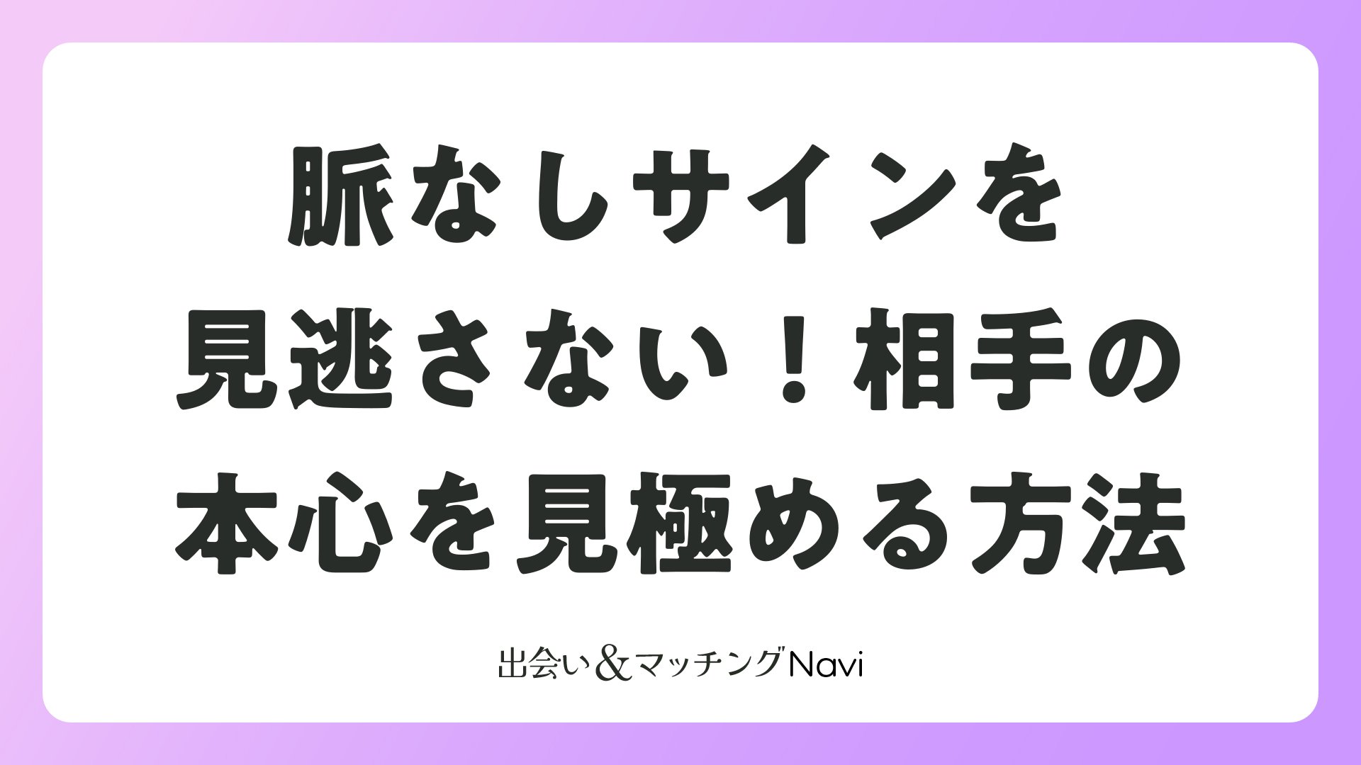 マッチングアプリや婚活で気になる相手の気持ちがわからない時、「私のことどう思ってる?」と不安になるのは誰もが経験することです。特に脈なしサインを見逃さず、早めに見極めることが、次の出会いにつながる鍵となります。この記事では、メッセージ交換からデートまで、さまざまなシーンで現れる脈なしの兆候を詳しく解説し、読者の皆さんが前向きに次のステップへ進めるようサポートします。
