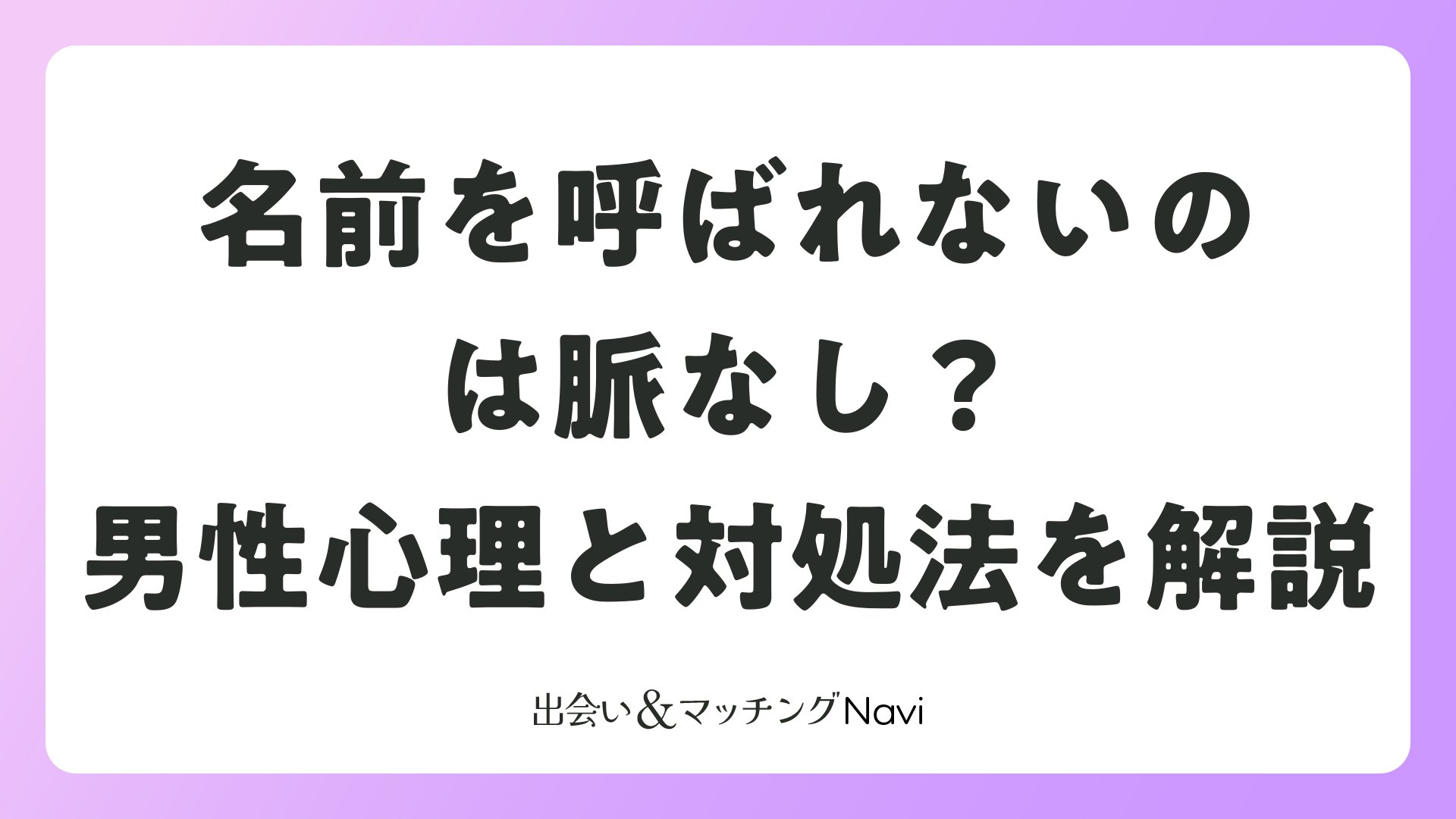 マッチングアプリや婚活パーティーで出会った相手から名前を呼ばれないと、「脈なし?」と不安になる人は多いですよね。でも、名前を呼ばれないことが必ずしも脈なしのサインとは限りません。相手の心理や状況を正しく理解すれば、関係を前進させるヒントが見えてきます。この記事では、恋愛経験者の声や専門的な視点から、名前呼ばれの背景を探り、ポジティブな対処法をお伝えします。