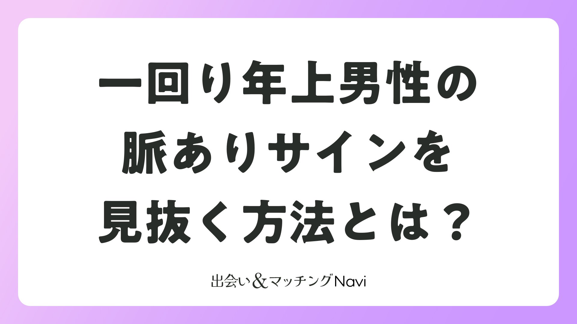年上男性との恋愛は、経験値の差や余裕のある態度に魅力を感じることが多いでしょう。しかし、相手が本当に自分に好意を持っているのか、それとも単なる遊び相手として見ているのか、判断が難しいこともあります。この記事で紹介した脈ありサインを参考に、相手の本気度を正確に見極め、自分の気持ちも大切にしながら、素敵な恋愛関係を築いていってください。マッチングアプリでの出会いは、正しい判断と相手への理解があれば、素晴らしい恋愛へと発展する可能性を秘めています。