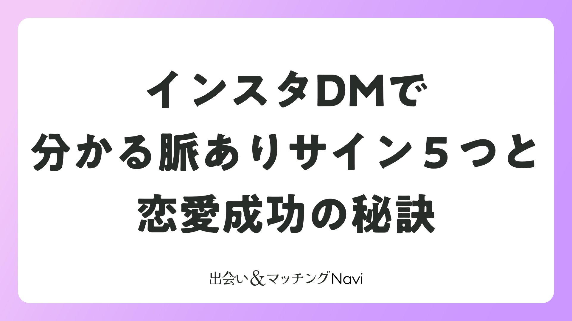 インスタグラムのDMで相手の反応が気になるとき、脈ありサインを見極めることが恋愛のチャンスを広げます。この記事では、マッチングアプリや婚活で出会った相手とのインスタDM交流を深め、リアルな関係へ発展させるためのポジティブなポイントを詳しく解説します。読者の皆さんが自信を持ってアプローチできるように、具体的な特徴と活用法をお届けします。