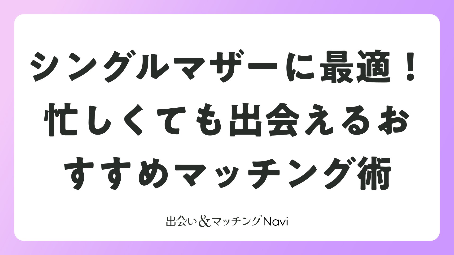 シングルマザーに最適!忙しくても出会えるおすすめマッチング術をまとめました