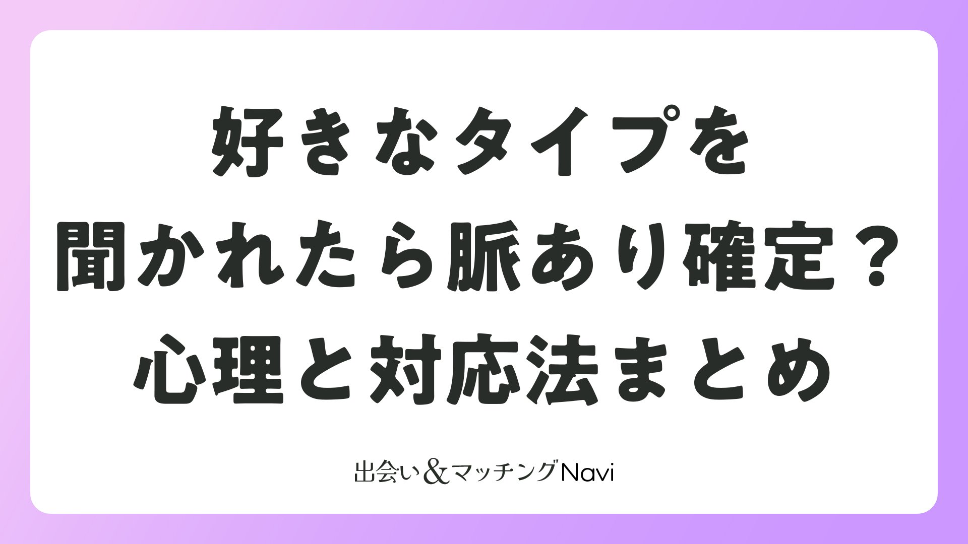 「好きなタイプ聞かれた」はマッチングアプリ・婚活の脈ありサイン!相手の心理を理解し、好印象な答えでチャンスを掴みましょう。積極的に好意を返せば、デートや交際へスムーズに進みます。