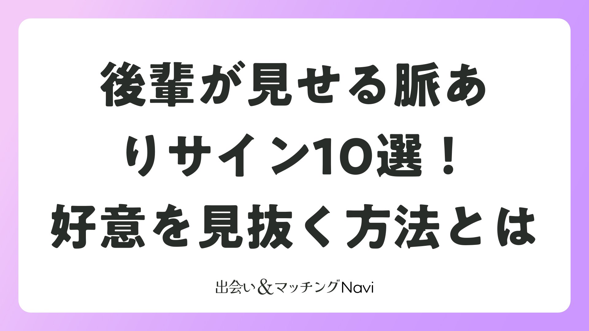 後輩の好意サインを10以上挙げ、勘違い回避とアプローチ法を詳述。マッチングアプリ・婚活視点で実践的にまとめました。今日から観察を始め、恋のチャンスを逃さないでください。