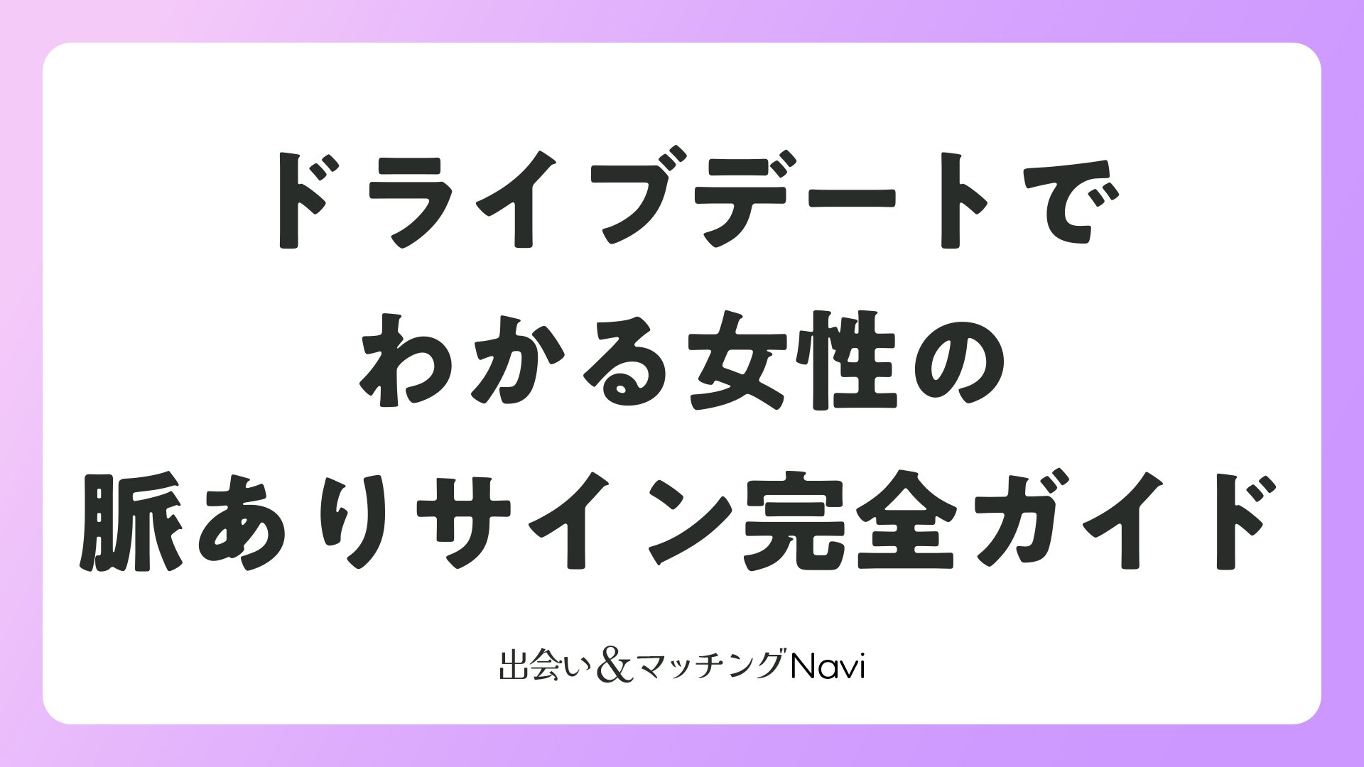 マッチングアプリや婚活で出会った女性とドライブデートへ行くのは、関係を深める絶好のチャンスです。この記事では、ドライブデート中に女性が示す脈ありサインを詳しく解説。会話や行動から好意を読み取り、次のステップへ進むためのヒントをお届けします。ドライブデートに誘われる時点で、すでに一定の信頼を得ている証拠。女性心理を理解して、恋愛を加速させましょう!