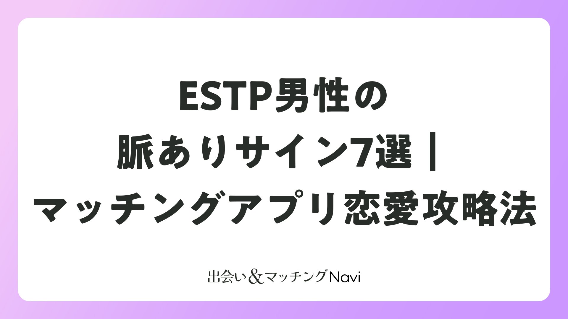 マッチングアプリで出会った相手がESTP(起業家型)だとわかったら、ワクワクしますよね。このタイプは行動力抜群で、ノリが良く一緒にいて楽しい存在。でも、脈ありサインを見逃すとチャンスを逃してしまうかも!この記事では、ESTPの脈ありサインを徹底解説。婚活や恋愛を本気で進めたいあなたに、具体的な行動パターンからマッチングアプリでの活用法まで、役立つ情報をたっぷりお届けします。さっそく、ESTP男性の心を掴むヒントをチェックしましょう!