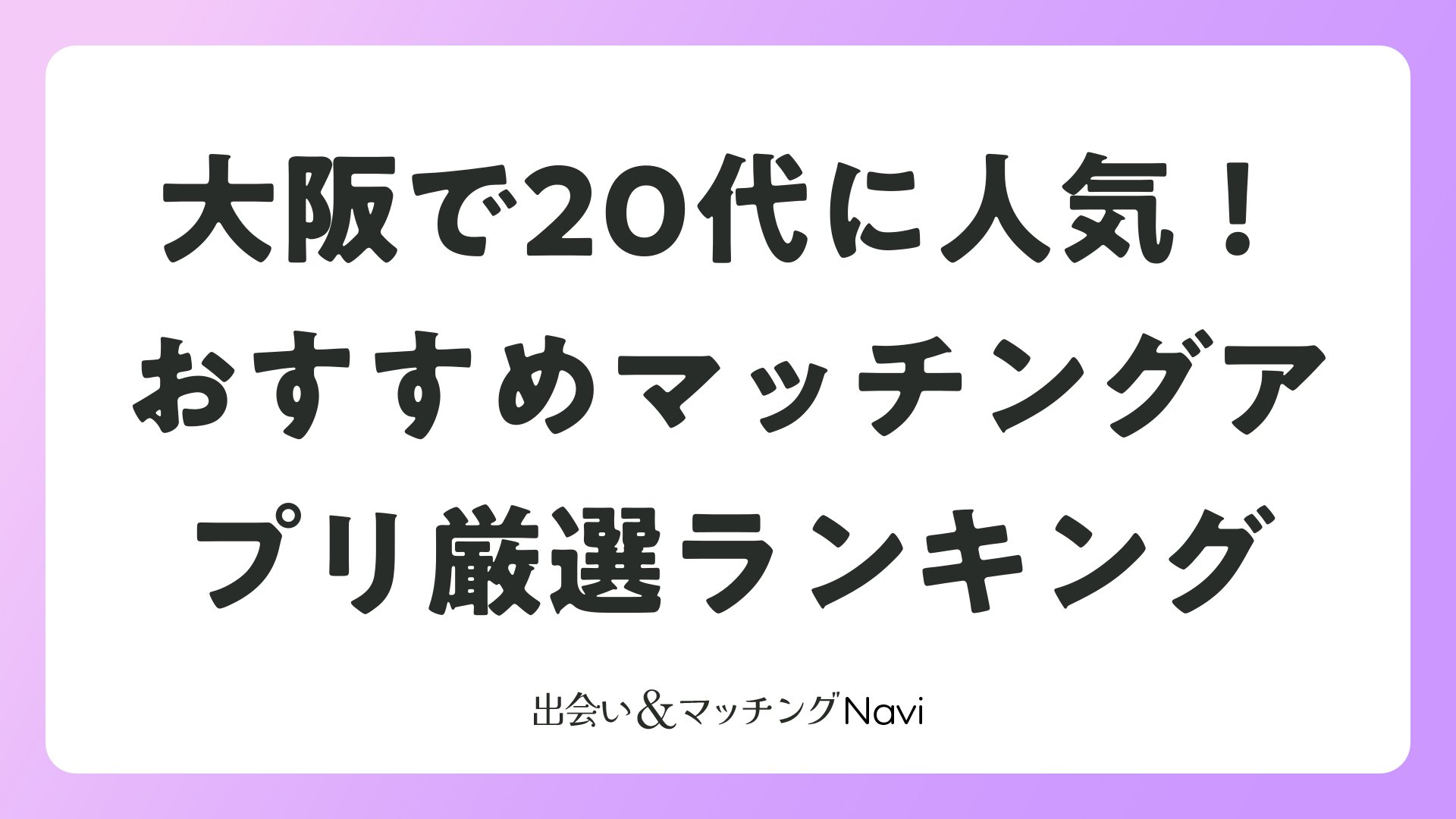 複数のアプリを比較し、大阪の20代に特におすすめのものを選びました。それぞれの特徴を活かし、目的に合わせて使い分けるのが成功のコツです。
