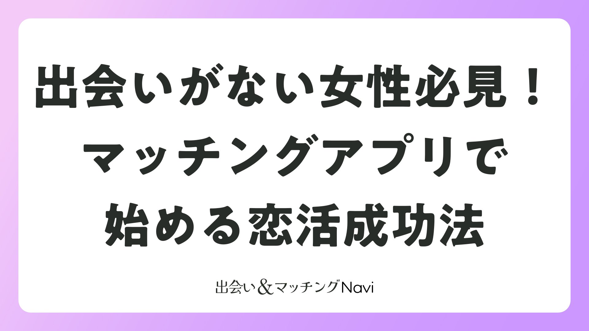 毎日の生活が忙しくて、自然な出会いの機会が少ないと感じている女性は少なくありません。そんなあなたにぴったりなのがマッチングアプリです。この記事では、出会いがない女性がマッチングアプリを上手に活用して、素敵な出会いを引き寄せる具体的な方法を紹介します。アプリの登録からメッセージのやり取り、デートまでの流れをステップバイステップで解説し、婚活や恋活を成功させるためのポジティブなヒントをお届けします。