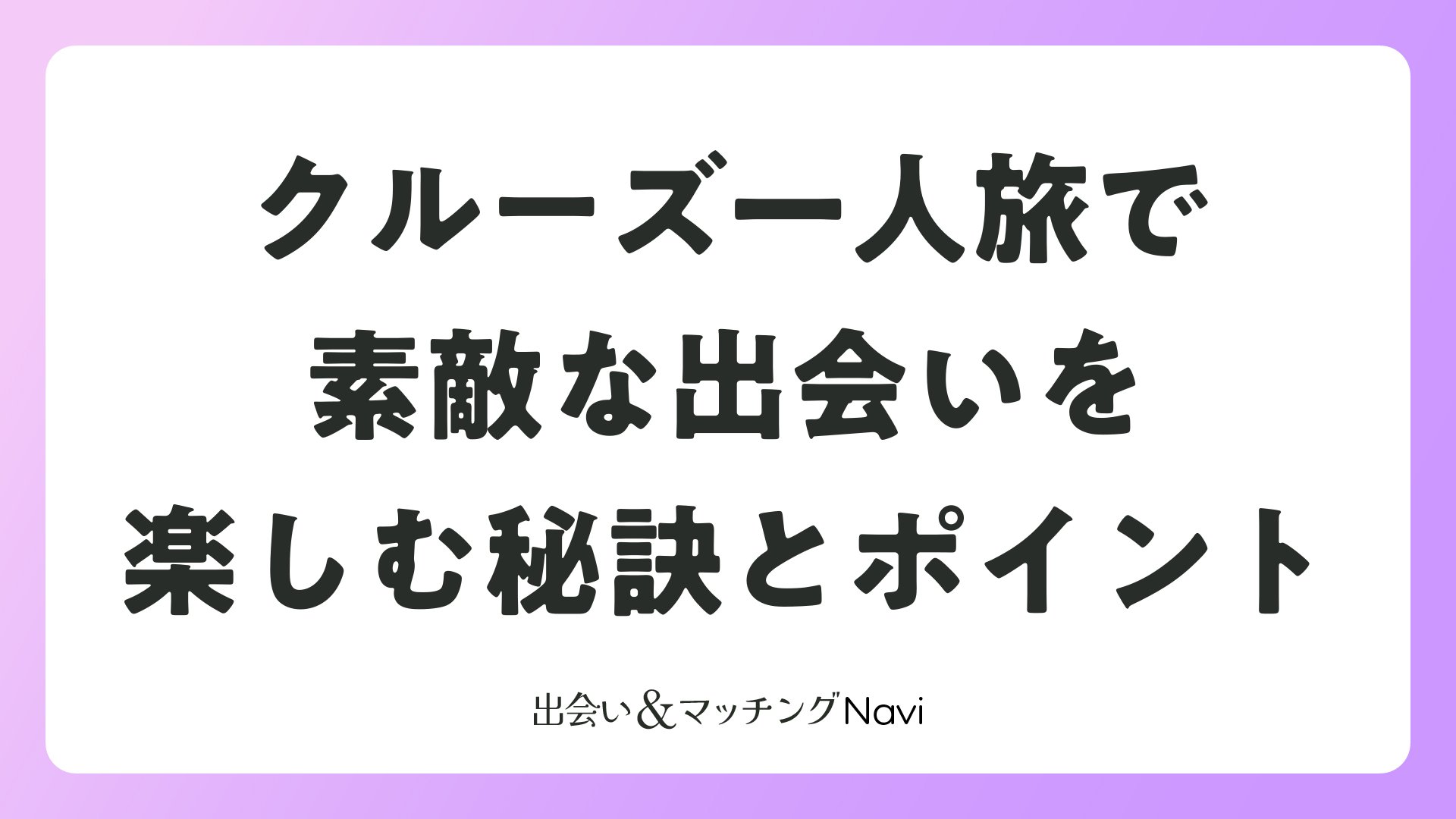 一人旅クルーズで上質な出会いを求めているなら、今すぐ予約を。マッチングアプリユーザーも必見の、ロマンチックな旅があなたを待っています。素敵な恋の第一歩を、波の音とともに踏み出しましょう。