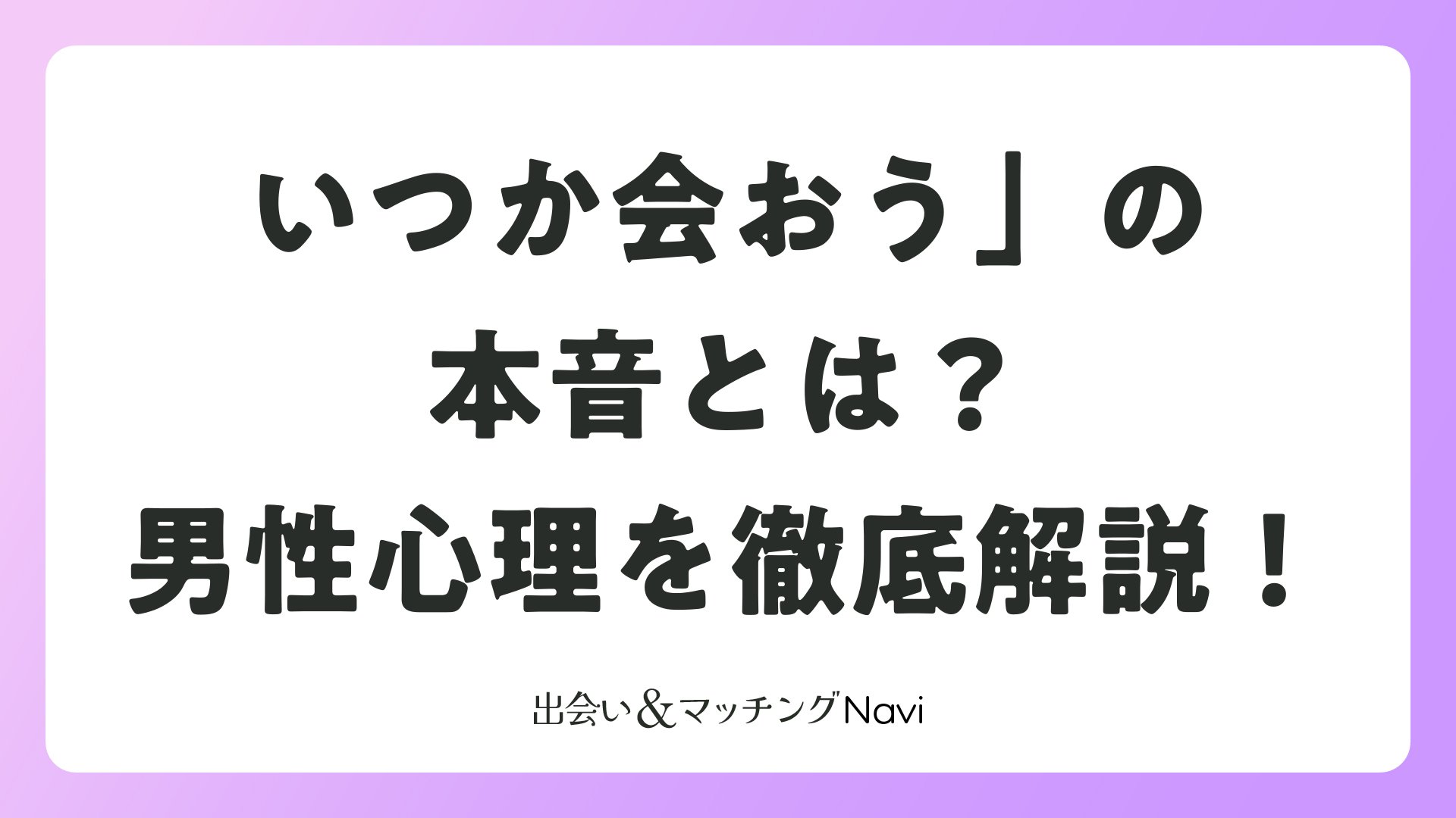 いつか会おう」の本音とは?男性心理を徹底解説!をまとめました