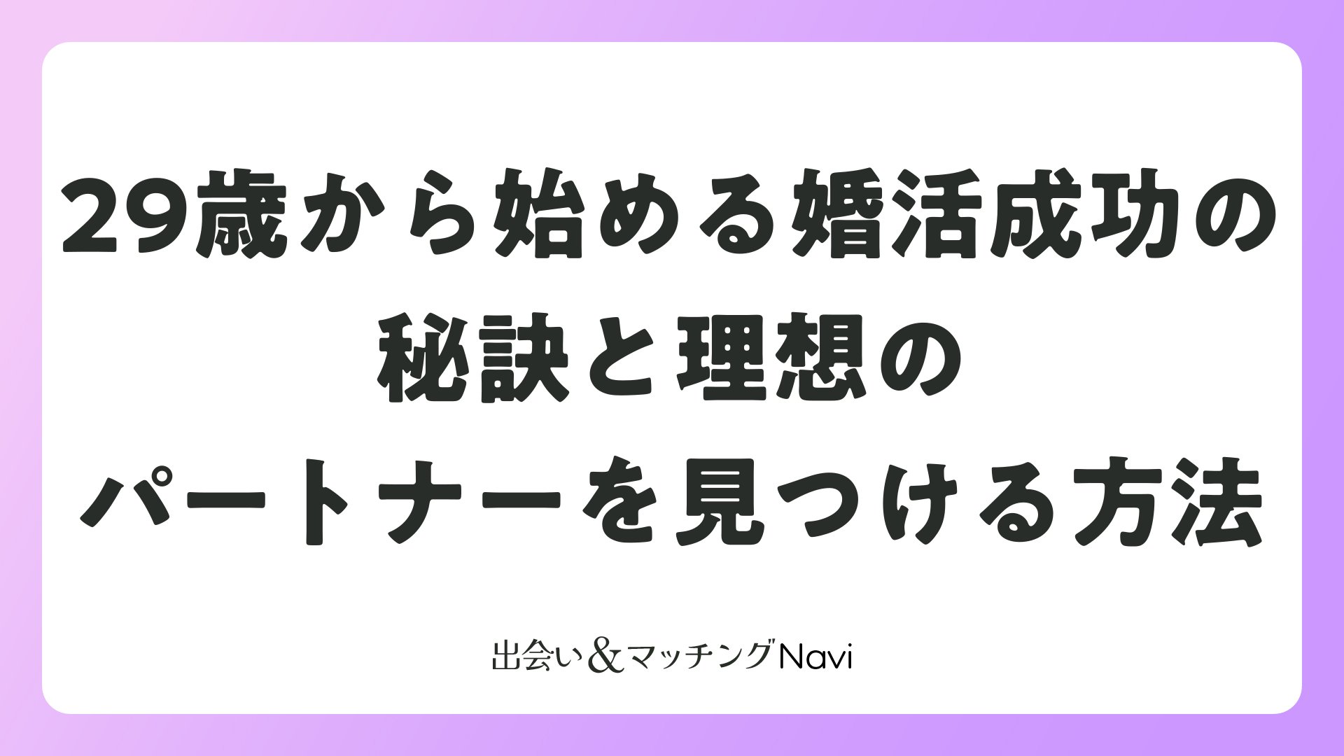 29歳から始める婚活成功の秘訣と理想のパートナーを見つける方法をまとめました