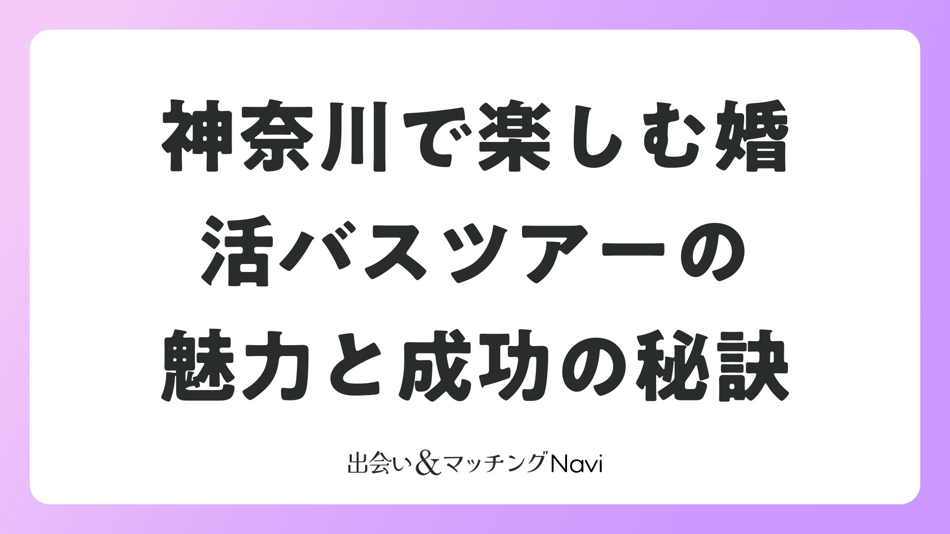 神奈川は交通網が発達し、横浜みなとみらいや三浦半島などデートスポット豊富。バスツアーはこれらを効率的に回れ、マッチングアプリとの相性も抜群。アプリで気軽に出会う時代に、リアルな旅体験が差別化します。自治体婚活のように地域密着型もあり、結婚観の合う相手が見つかりやすいです。