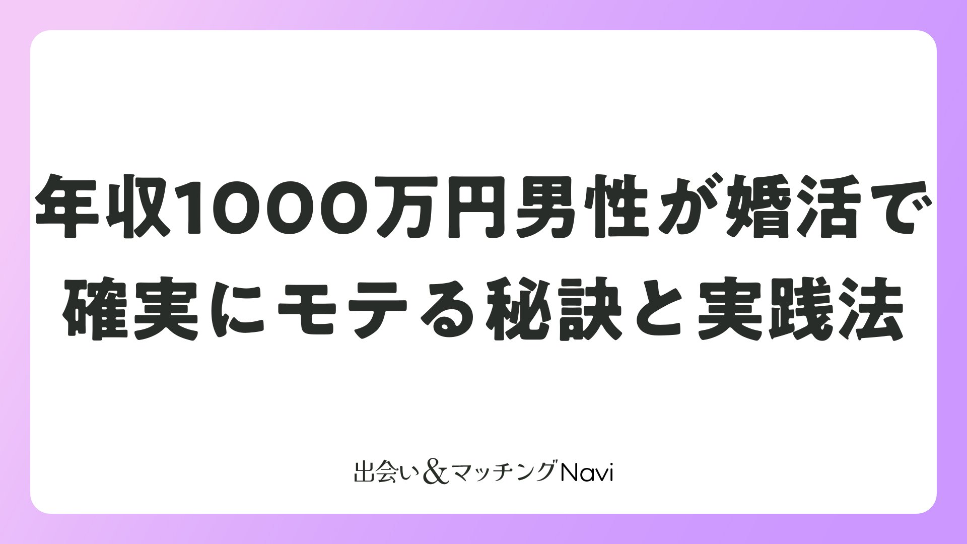年収1000万円男性が婚活で確実にモテる秘訣と実践法をまとめました