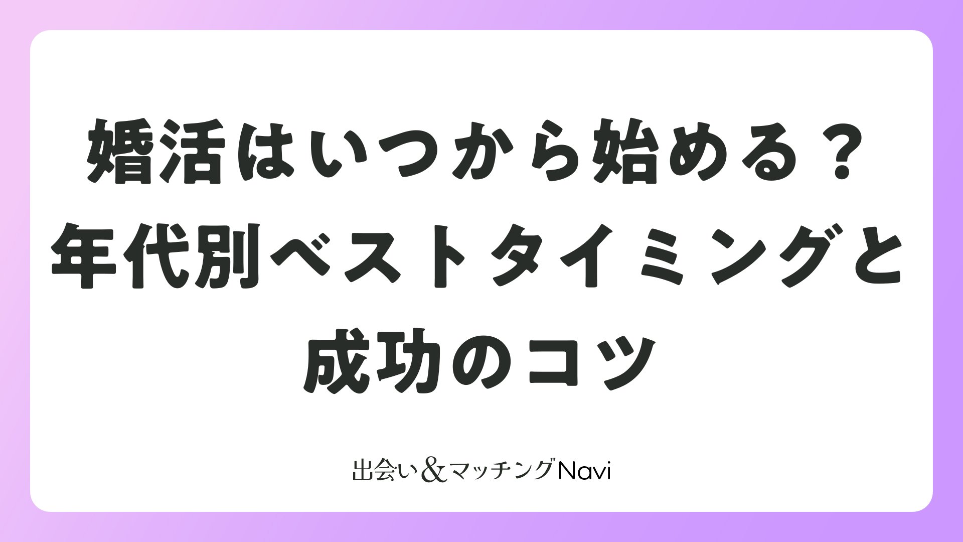 婚活はいつから始める?年代別ベストタイミングと成功のコツをまとめました