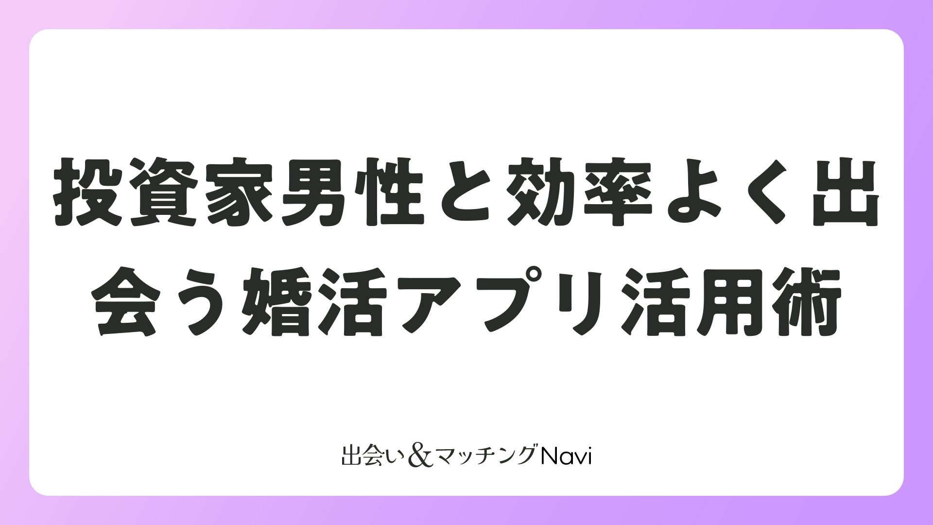 投資家男性と効率よく出会う婚活アプリ活用術をまとめました