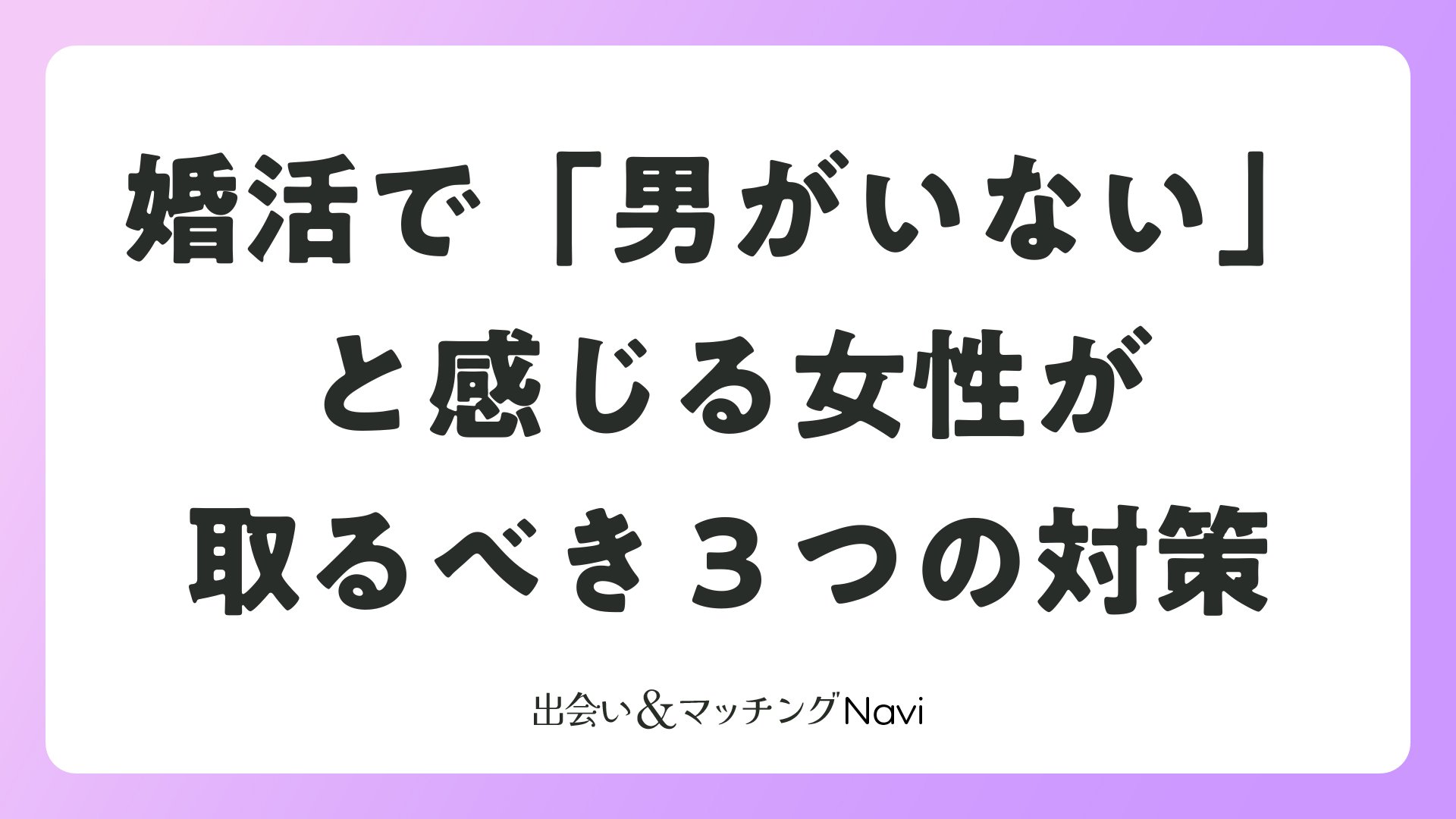 婚活で「男がいない」と感じる女性が取るべき3つの対策をまとめました