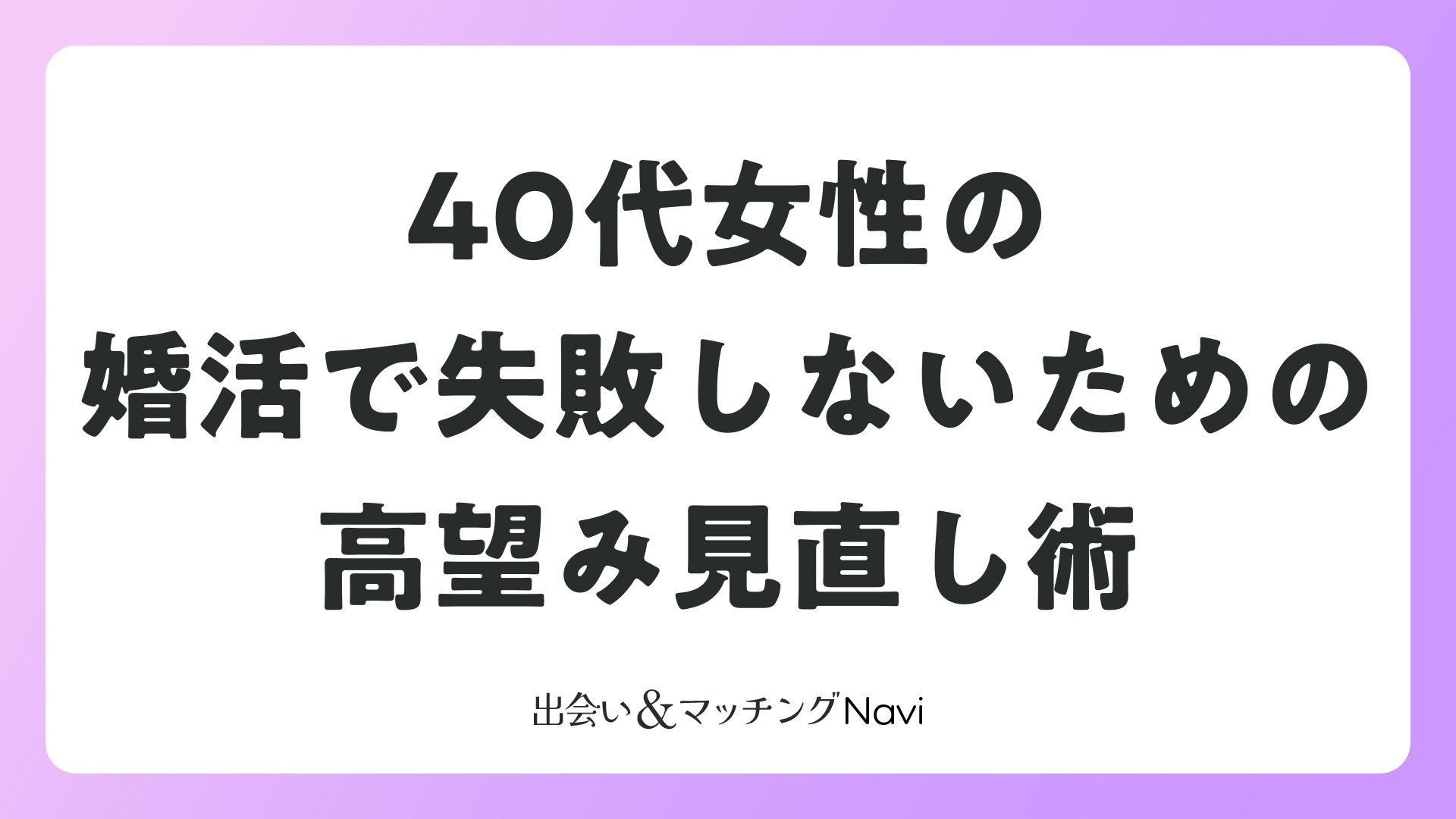 40代女性の婚活で失敗しないための高望み見直し術をまとめました