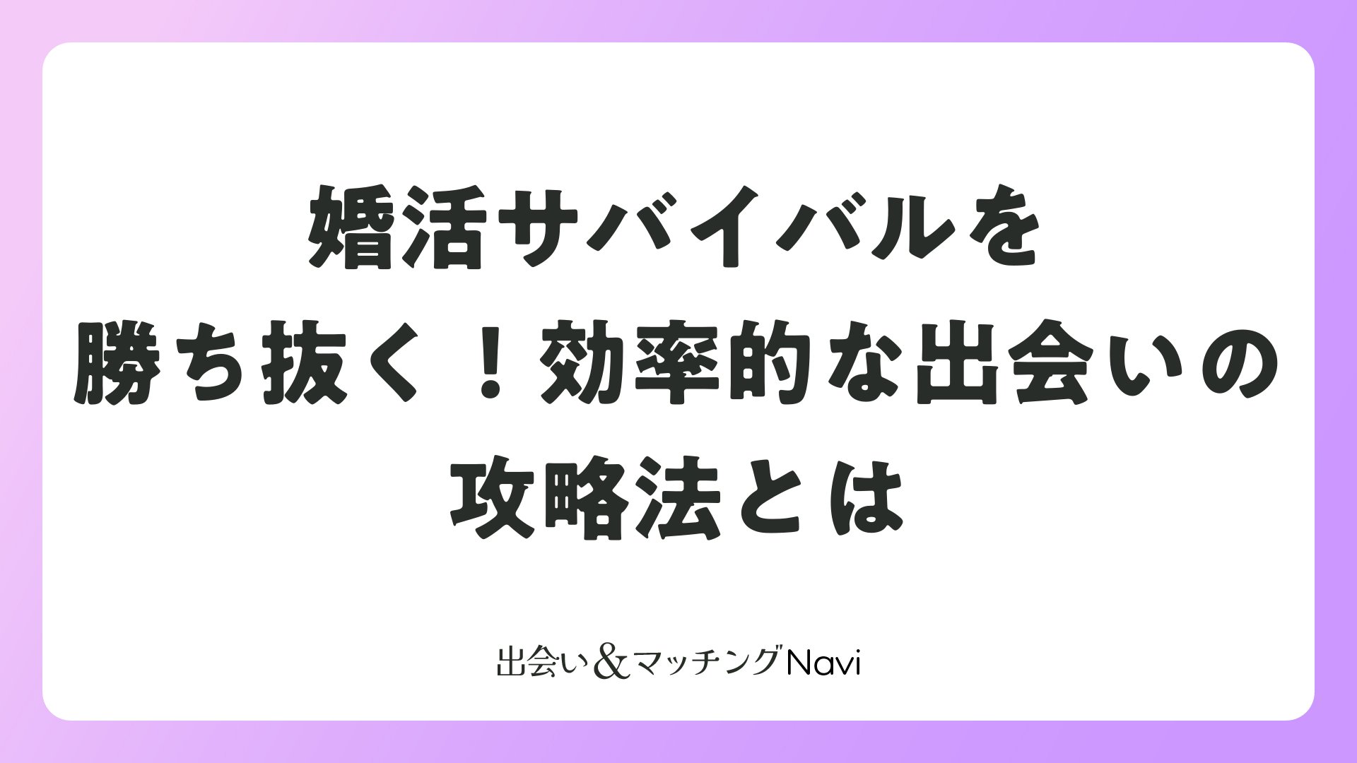 本記事では、婚活サバイバルの実態を理解し、マッチングアプリから結婚相談所まで、様々な出会いの手段を活用しながら、いかにして理想のパートナーを見つけるかについて、詳しく解説していきます。